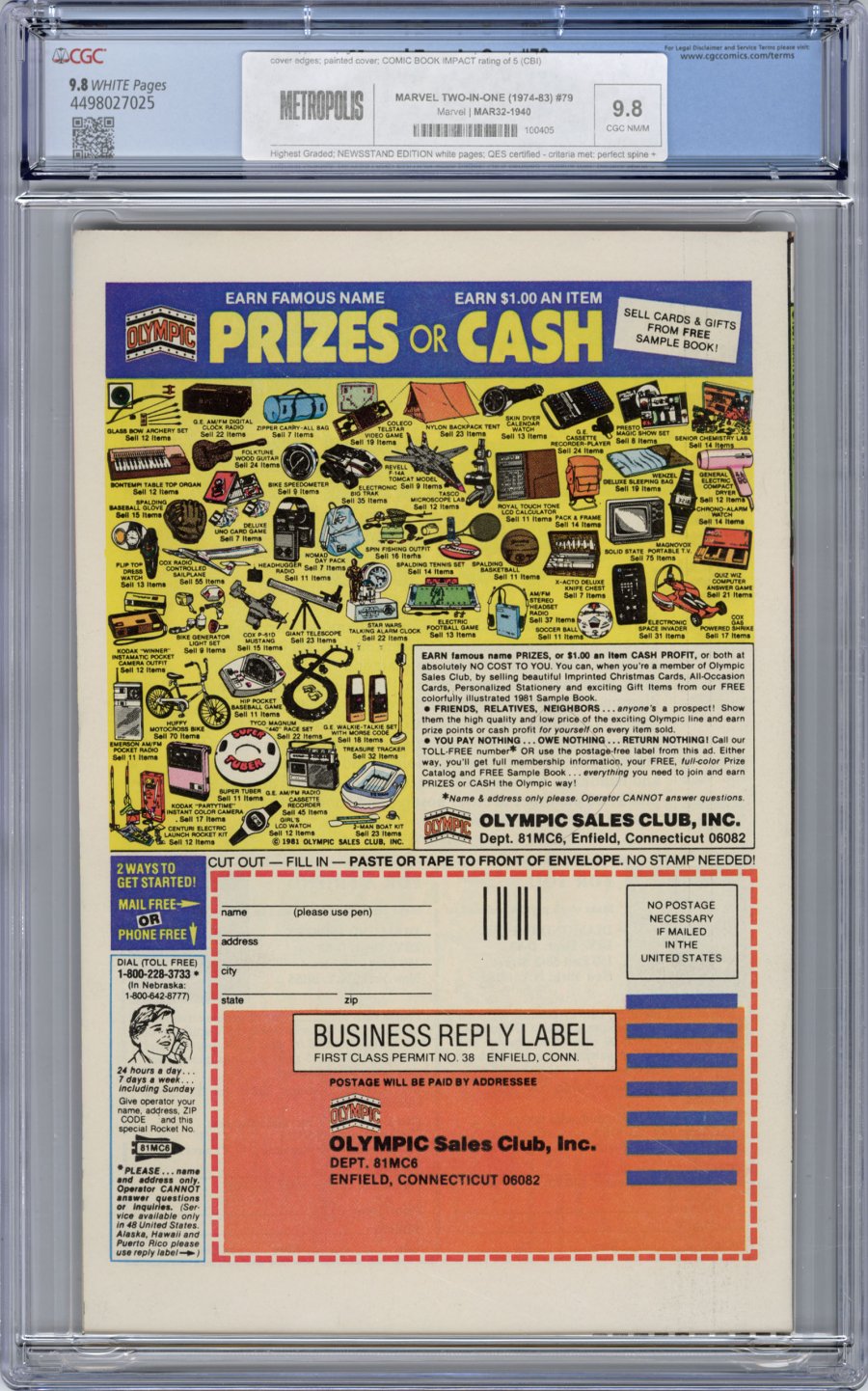 NEWSSTAND EDITION white pages; QES certified - criteria met: perfect spine + perfect staple area + perfect cover edges