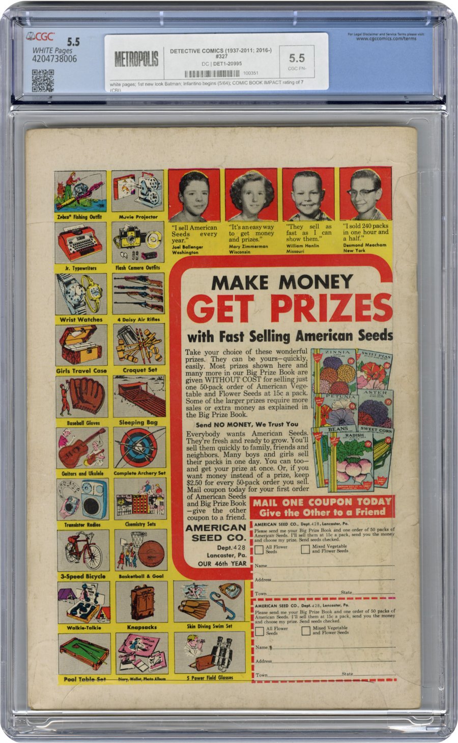 1st new look Batman; Infantino begins (5/64); COMIC BOOK IMPACT rating of 7 (CBI)