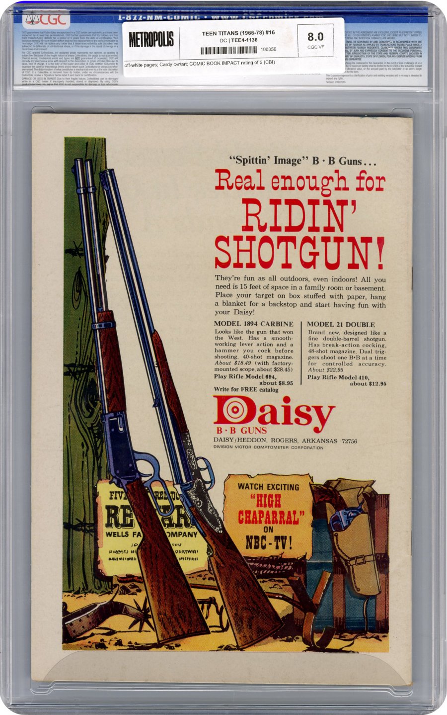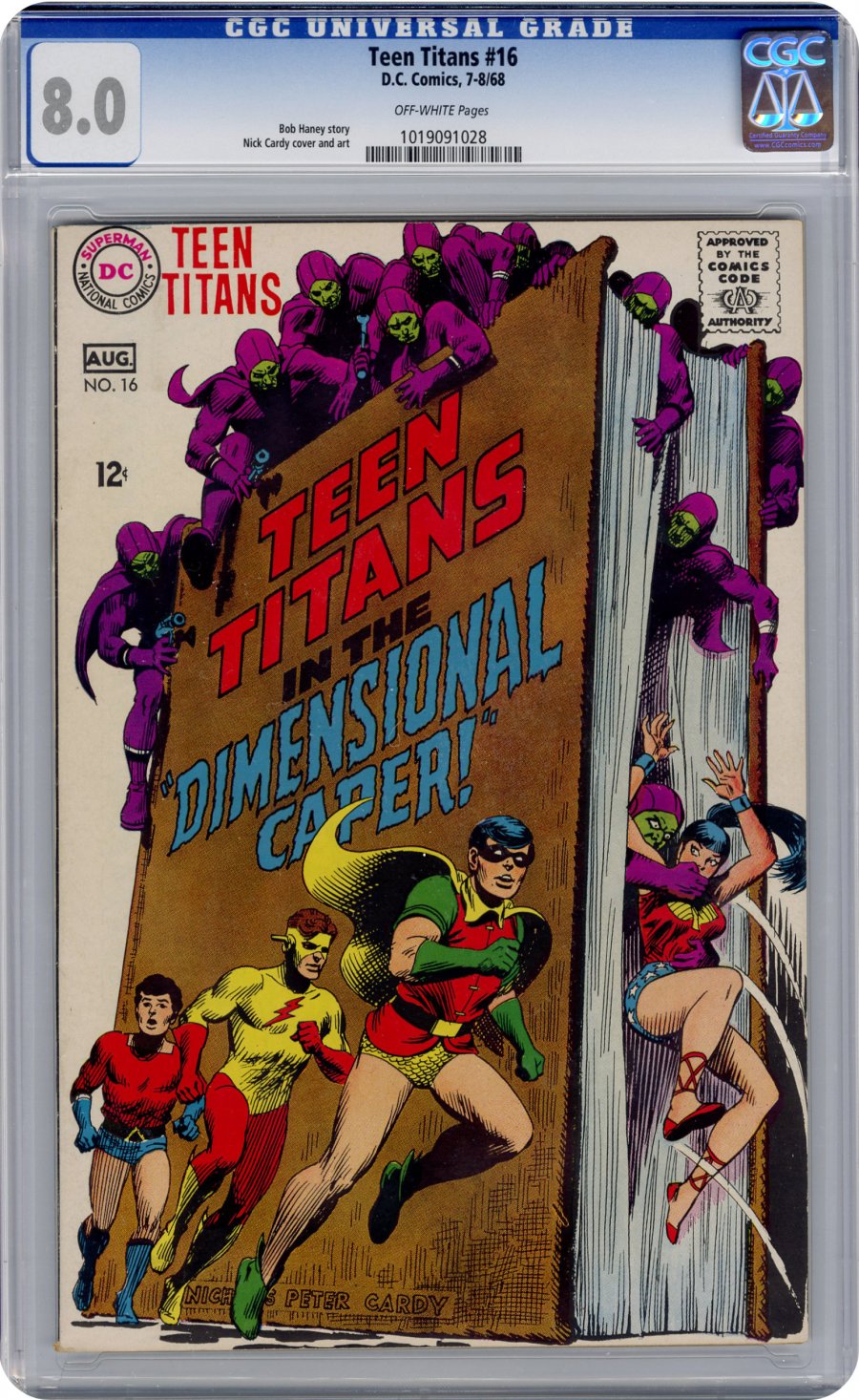 Cardy cvr/art; COMIC BOOK IMPACT rating of 5 (CBI)Written by Bob Haney. Art and cover by Nick Cardy. The Titans prevent an invasion from another dimension that occupies the same space as Chet Walters' school.