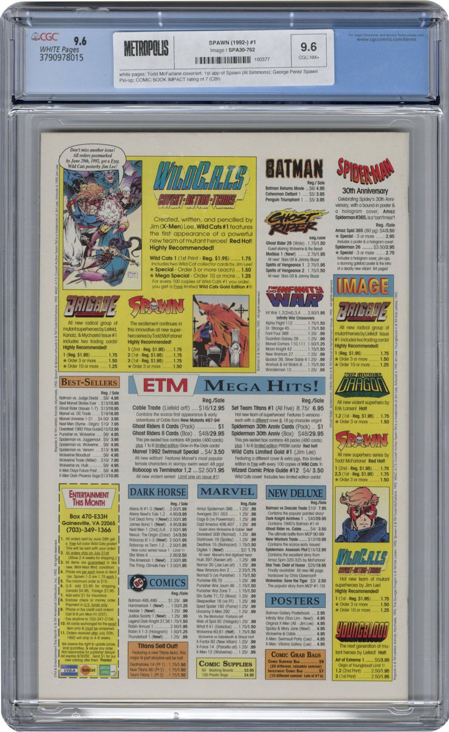 Todd McFarlane cover/art; 1st app of Spawn (Al Simmons); George Perez Spawn Pin-up; COMIC BOOK IMPACT rating of 7 (CBI)