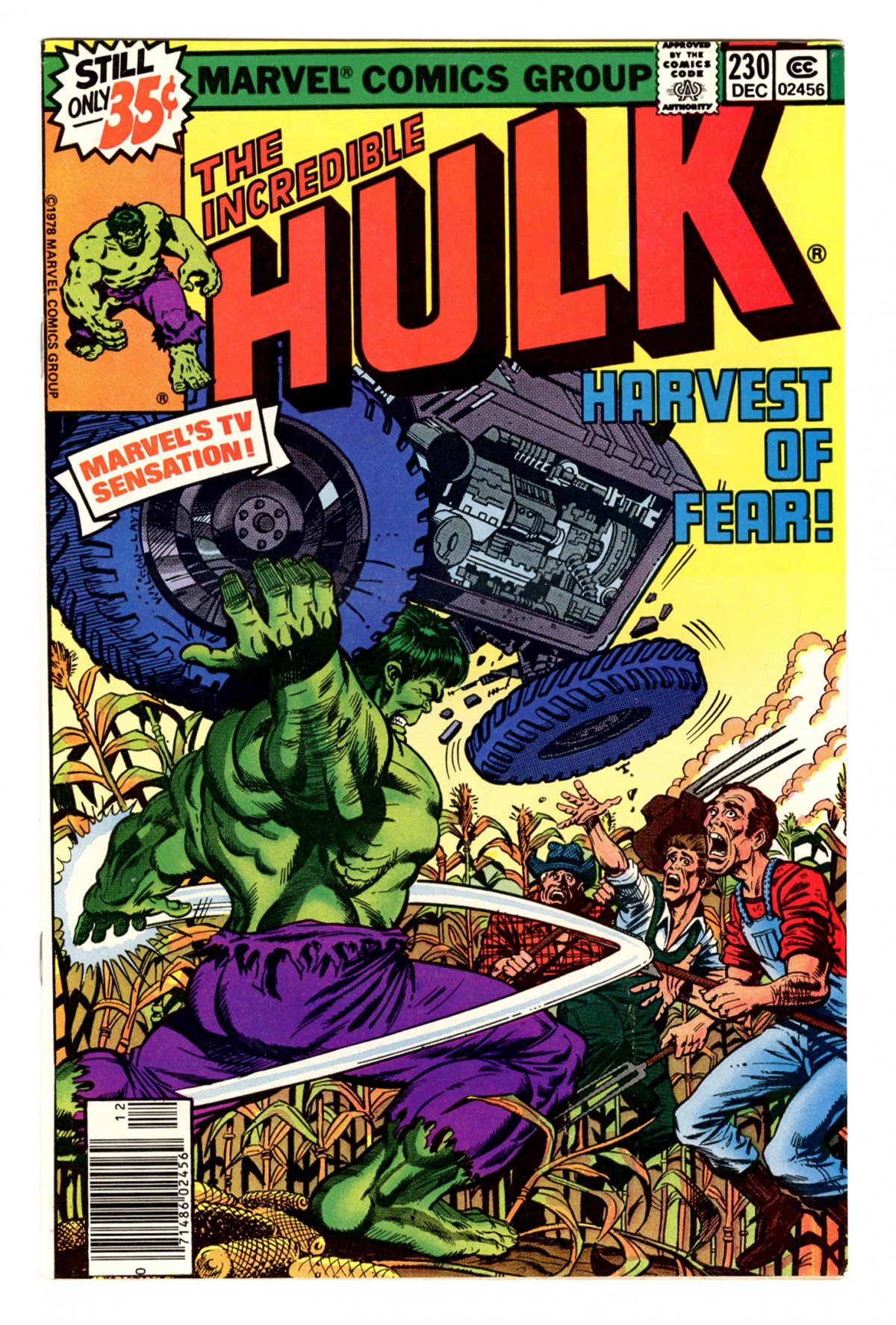 The Harvester From Beyond; COMIC BOOK IMPACT rating of 5 (CBI)"The Harvester from Beyond!" Doc Samson and Moonstone cameos. Story by E. Maggin. Art by Bob Layton and Bruce Patterson. When the Hulk is discovered in the crops of a farming community, the locals don't take too kindly of him helping himself to their turn out. Plus, the Hulk is abducted by aliens. Let's hope they don't break out the probes.