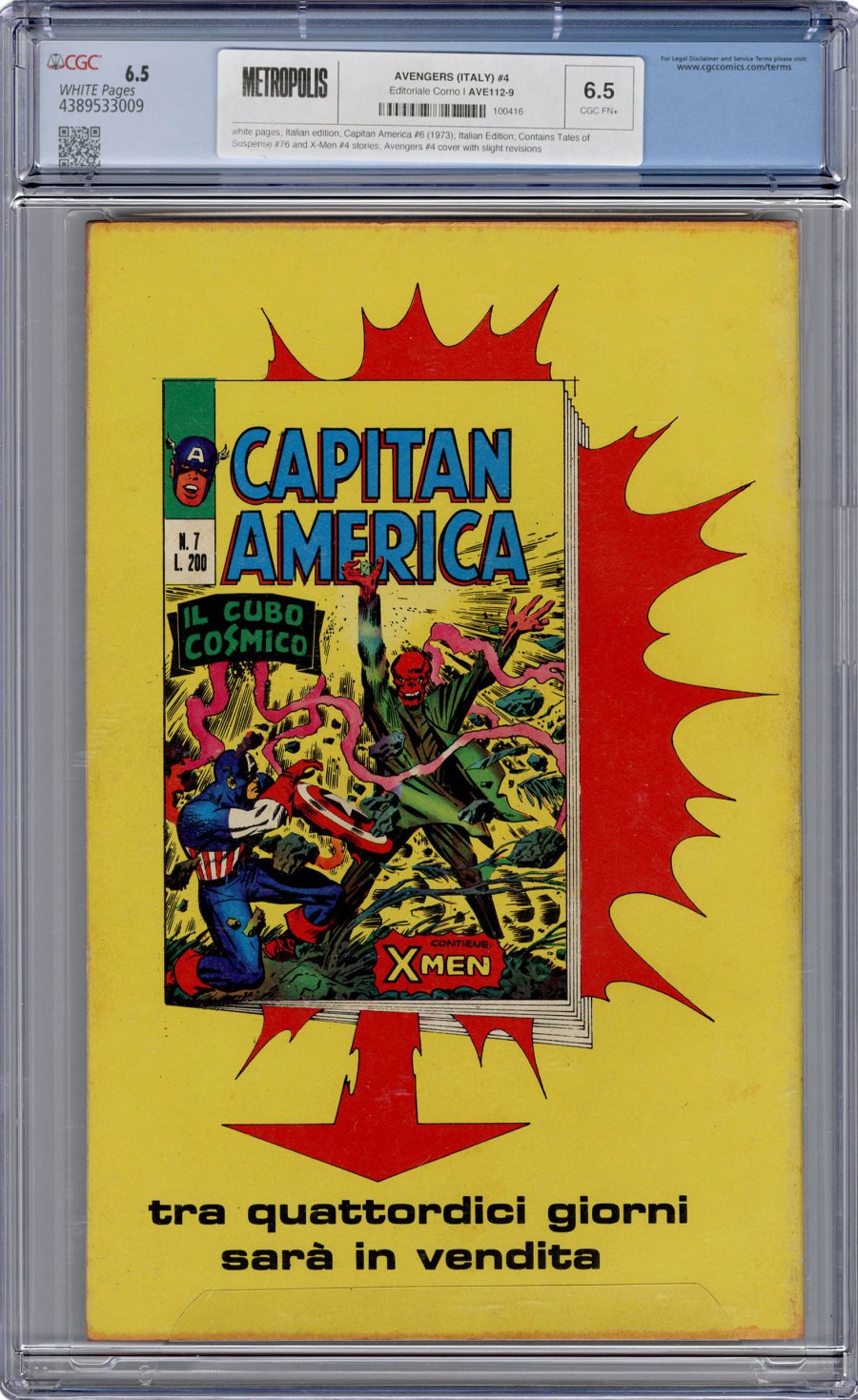 Capitan America #6 (1973); Italian Edition; Contains Tales of Suspense #76 and X-Men #4 stories; Avengers #4 cover with slight revisions