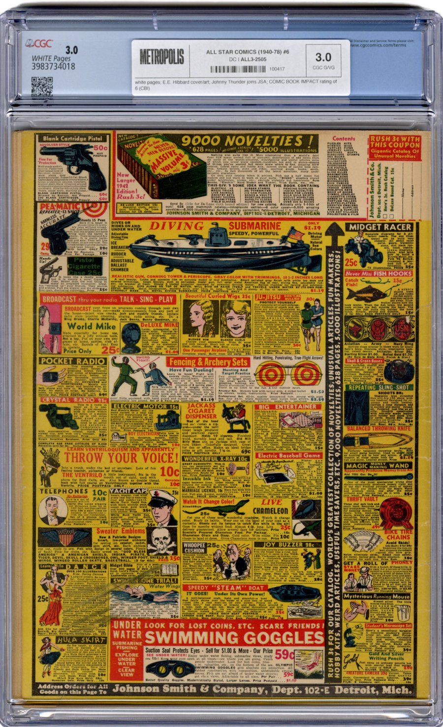E.E. Hibbard cover/art; Johnny Thunder joins JSA; COMIC BOOK IMPACT rating of 6 (CBI)Bernard Baily art; Flash becomes honorary member. Aw, gee whiz!