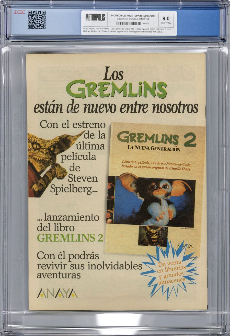 Los Comics de El Sol #16 (1990); Spanish Edition; Comics Forum; Hulk vs. Wolverine, X-Men & Leader appearance, free supplement included with El Sol newspaper
