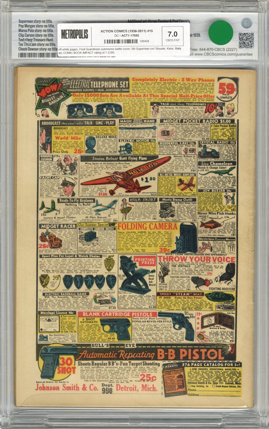 Fred Guardineer submarine battle cover; 5th Superman cvr! Shuster, Kane, Baily art; COMIC BOOK IMPACT rating of 7 (CBI)