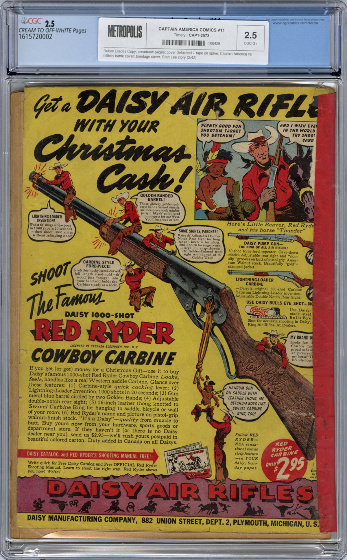 Al Avison took over the covers from Jack Kirby and turned in a wonderful cover piece for Captain America Comics #11 — featuring Cap battling a different kind of enemy in the form of evil hillbillies. This cover is based on the interior story "The Feud Murders," and serves as an interesting twist on the run of Nazi covers up to this point. Perhaps signaling a turn away from Kirby's inflammatory anti-Axis obsession, this book is of some note in the history of Captain America, as it is the launching point of the decades-long estrangement the character would spend away from co-creator Kirby. Of course, the King would return to bring back Captain America with the classic Avengers #4 from Marvel's influential Silver Age.