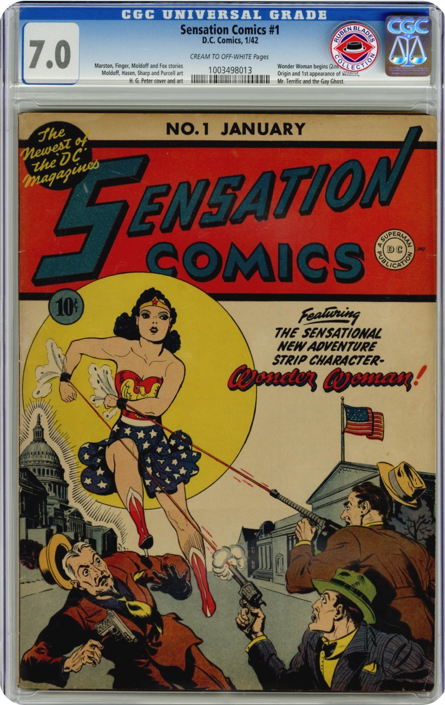 Sensation #1 also remains the moment when William Marston's heroine exploded onto the Golden Age scene while establishing her in DC's Superhero Trinity alongside