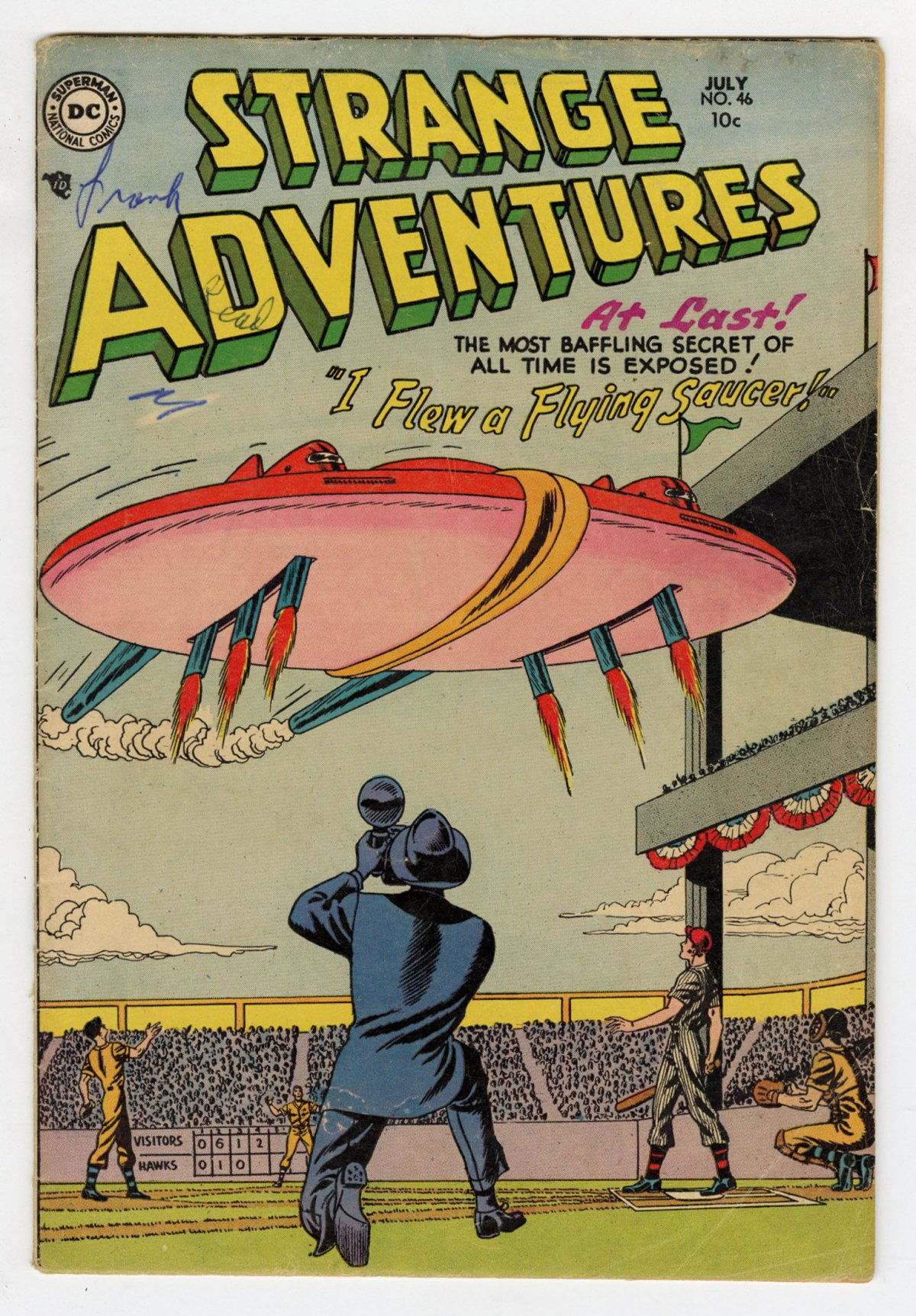 scarce; flying saucer, baseball cover; COMIC BOOK IMPACT rating of 6 (CBI)