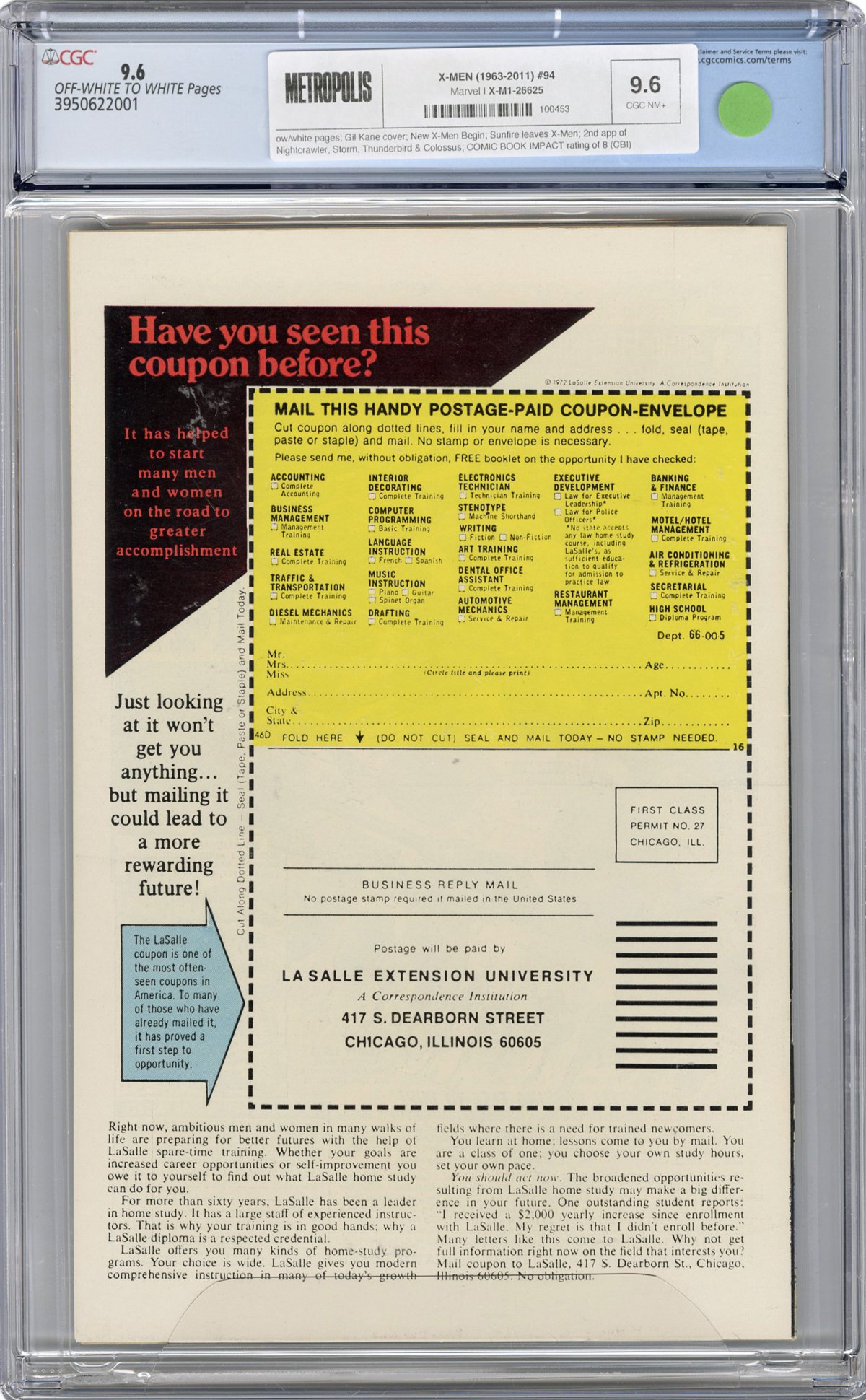 X-Men #94 would be the first regular issue of Marvel’s long-running series to feature the new team of Storm, Banshee, Wolverine, Thunderbird, Colossus, and Nightcrawler alongside founding member Cyclops. Although these characters were introduced in Giant-Size X-Men #1, this is the first proper issue of X-Men to feature the newcomers — who would soon turn a struggling Marvel title into one of the company's best-selling titles.