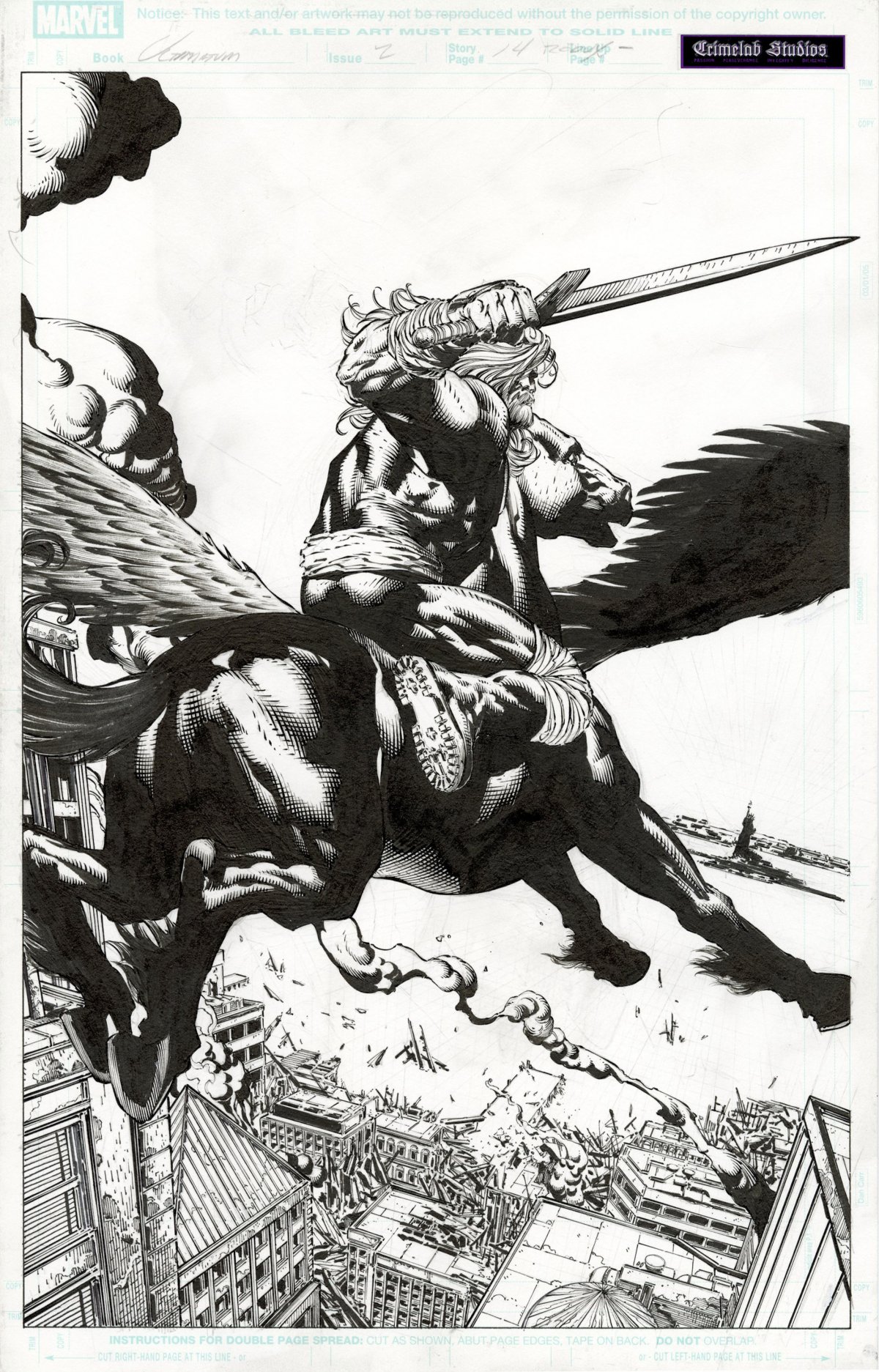 David Finch pencils/Danny Miki inks; page 14; 2009; image size 10.25" x 15.75"Pen and ink. Art is in excellent condition.