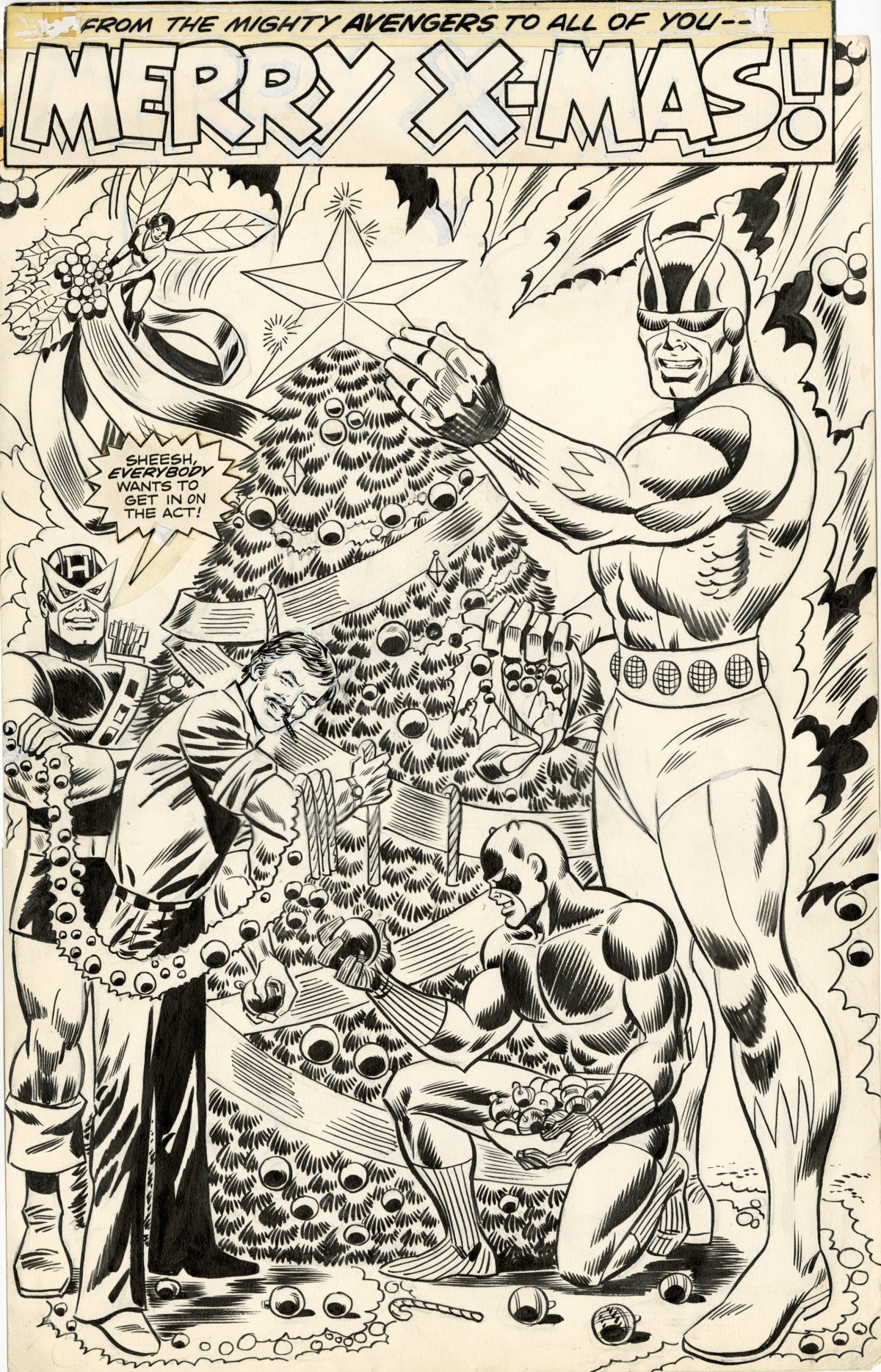 Stan Lee and the Avengers!Caption and dialogue are hand lettered paste-ups. Pen and ink. Art features mild handling wear. Otherwise in excellent condition.