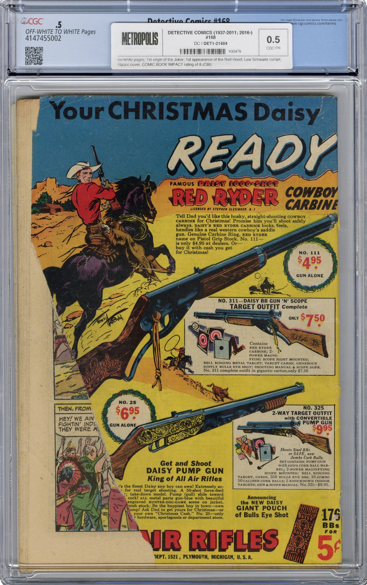 THANK GOD I AVOIDED BUYING THAT DETECTIVE 168 BACK IN THE DAY SAID NO ONE. 1st origin of the Joker; 1st appearance of the Red Hood; classic cover, COMIC BOOK IMPACT rating of 8 (CBI)
