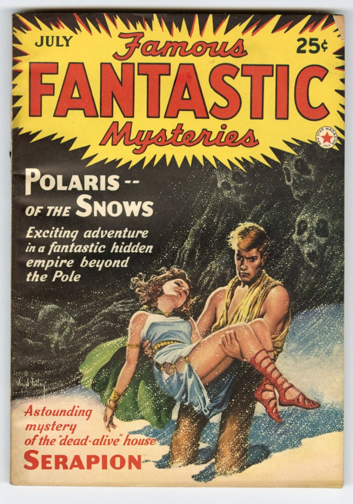 July 1942 (V4 #3). cover by Virgil Finlay. Fantasy stories "Polaris - of the Snows" by Charles B. Stilson and "Serapion" by Francis Stevens. Interior artwork by Virgil Finlay and Frank R. Paul.