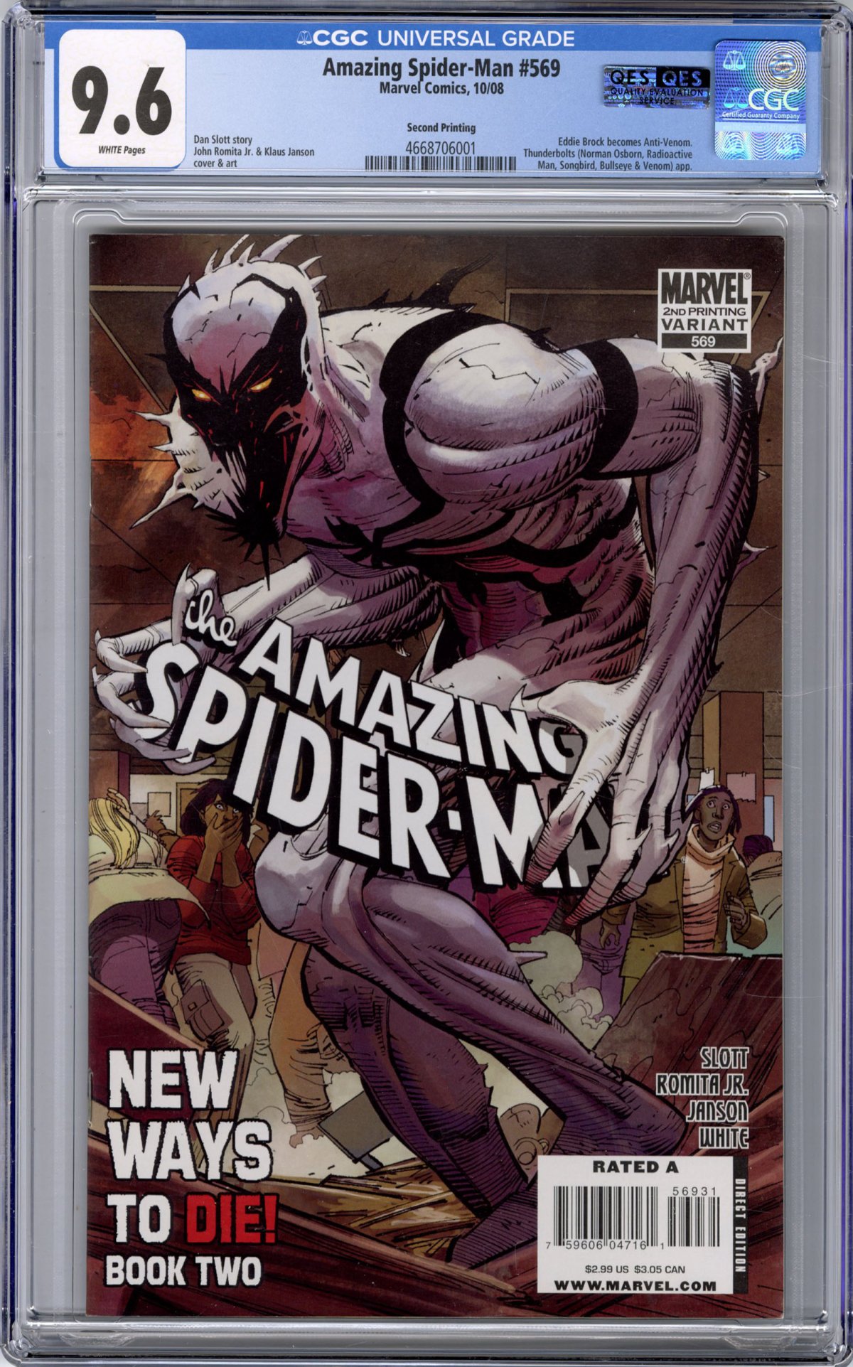 John Romita Jr cover/art; Dan Scott script; 1st camo app of Anti-Venom, Eddie Brock (final page).