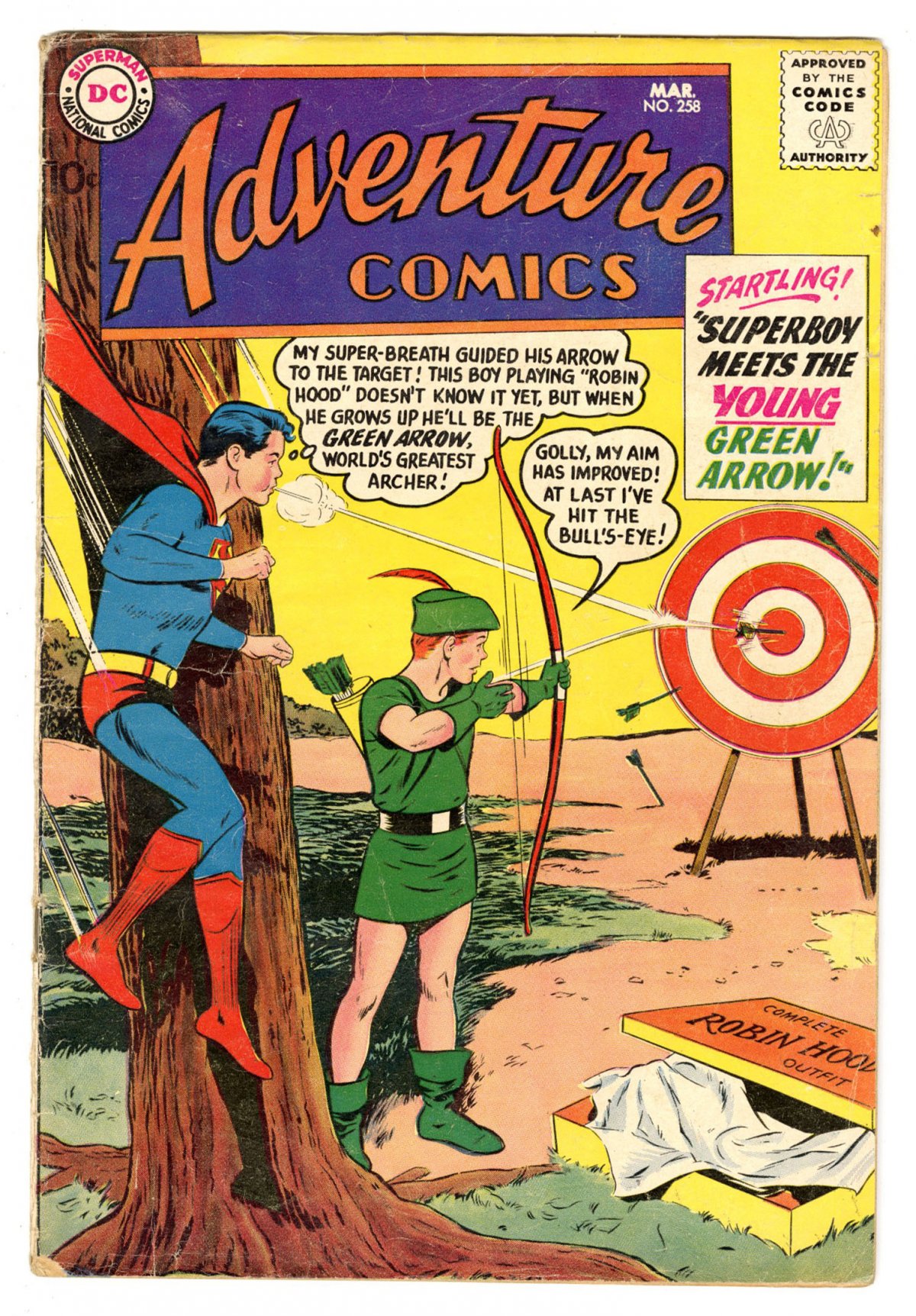 1st meeting of Superboy and Oliver Queen (Green Arrow); COMIC BOOK IMPACT rating of 6 (CBI)1st mention of Star City in Green Arrow