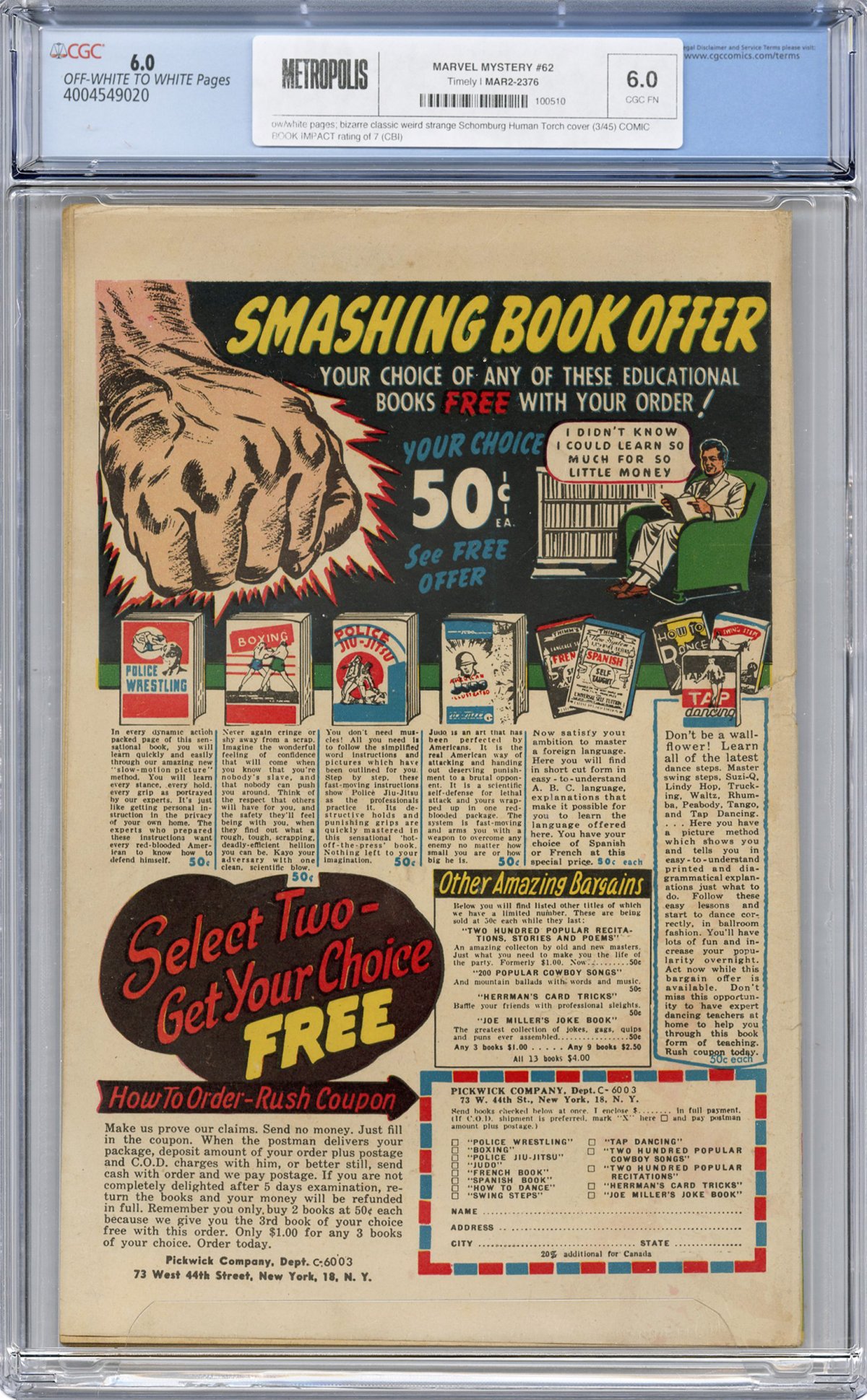 bizarre classic weird strange Schomburg Human Torch cover (3/45) COMIC BOOK IMPACT rating of 7 (CBI)