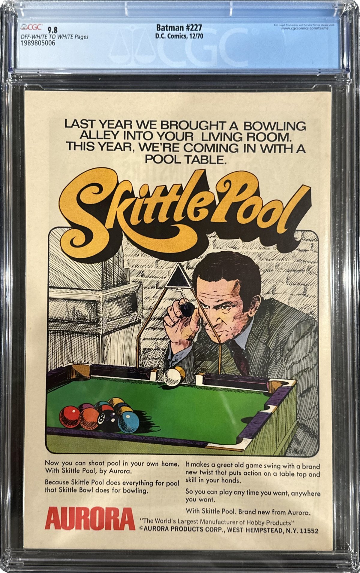 Highest GradedAlways an avid student of the history of comics, Neal Adams used his unprecedented fame during the early 1970s to draw attention to the neglected giants of the industry, both by actively lobbying for the Big Two to finally give these legends their due, and by paying artistic tribute to the grand classics of the Golden Age of comics. This is likely his most memorable tribute to the heyday of superhero comics, his justly famous homage to the legendary cover of Detective Comics #31, probably the most famous Golden Age Batman cover after #27. Taking the dark, gothic atmosphere of the original image and pairing it with his deft, photorealistic style, Adams manages to take a perfect cover and make it even more extraordinary, matching the brooding mood of the source image with a then-contemporary "dark romance" style perfectly suited to the feel of the book's recent pulpy revamp. One of the top three covers by arguably the finest cover artist of the 1970s, and an issue that is instantly snapped up by Adams fanatics every time it comes to market.