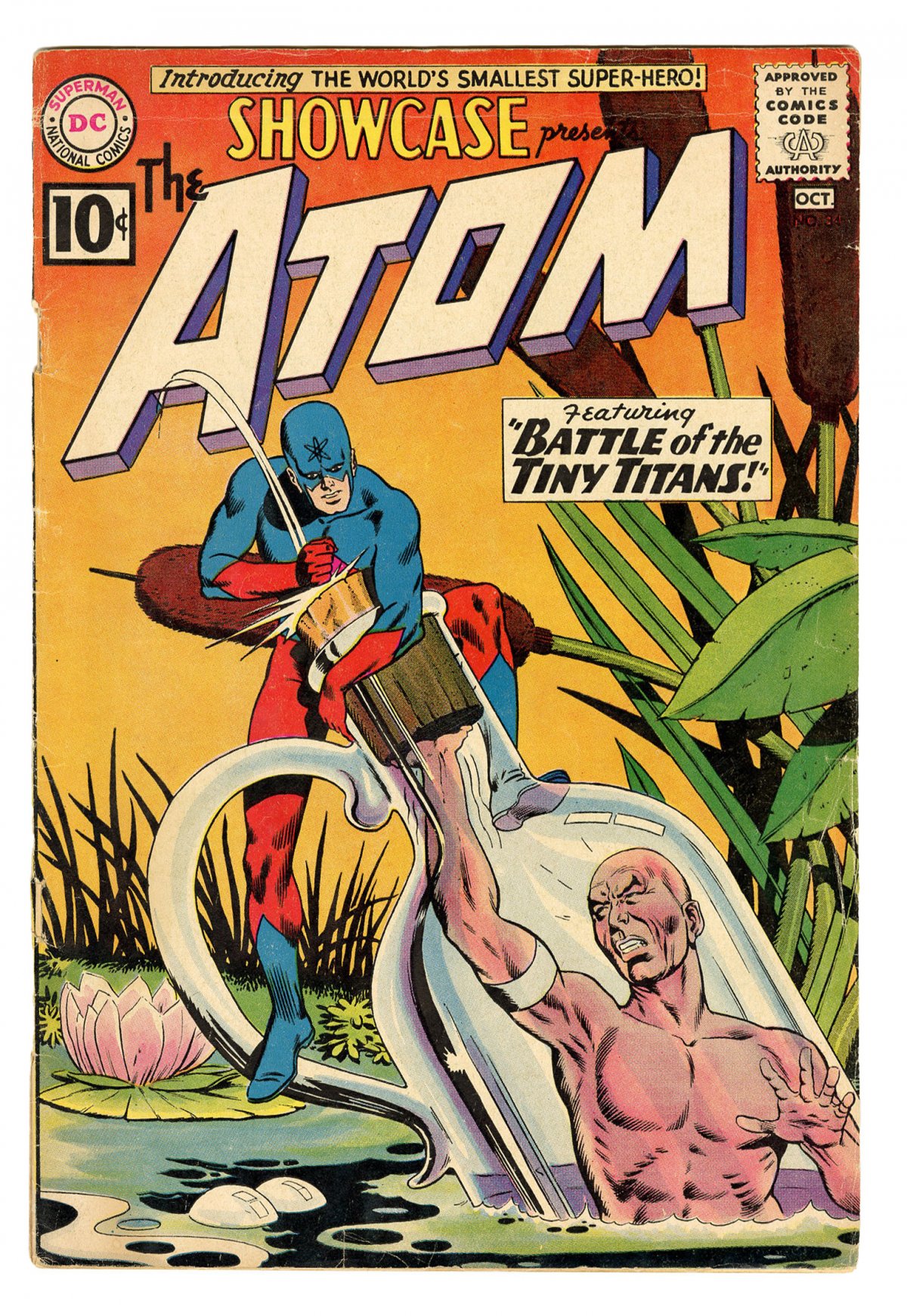 origin and 1st app. Silver Age Atom (Ray Palmer); 1st app. Jean Loring; COMIC BOOK IMPACT rating of 8 (CBI)The original Golden Age Atom was one of a group of miniature superheroes from the era, it seemed every imprint had their own version of the concept, Doll Man, Minimidget, and of course, later in the Silver Age, Marvel’s Ant-Man. During DC’s rush to fan the flames of their GA revival in Showcase that brought Flash and Green Arrow back to the spotlight, editor Julius Schwartz and writer Gardner Fox enlisted Gil Kane to bring the Atom back to life in the Silver Age. The first Atom had no real superpowers besides his stature, but the newly envisioned version would have several skills in his arsenal, the main being his ability to shrink and grow back to normal height at will, through the use of a lens imbued with matter from a dwarf star. Ray Palmer was experimenting on his lens in hopes of helping increase the world’s food supply, but everything he shrank exploded after an hour, after a cave in, Palmer used the lens on himself in order to help his fiancée, Jean Loring, escape the disaster, and sacrifice himself, but he did not explode, he survived and decided to use his newfound powers to fight evil. The character has since become a reliable hero in DC’s stable, going on to be featured in myriad comics, and making appearances in several DC TV properties, as well as video games. It stands to reason that the Atom will make a DCEU appearance any time now, making this first appearance and origin story a valuable piece of comic book history, which is still quite affordable for the time being, although not easy to find in high grades.