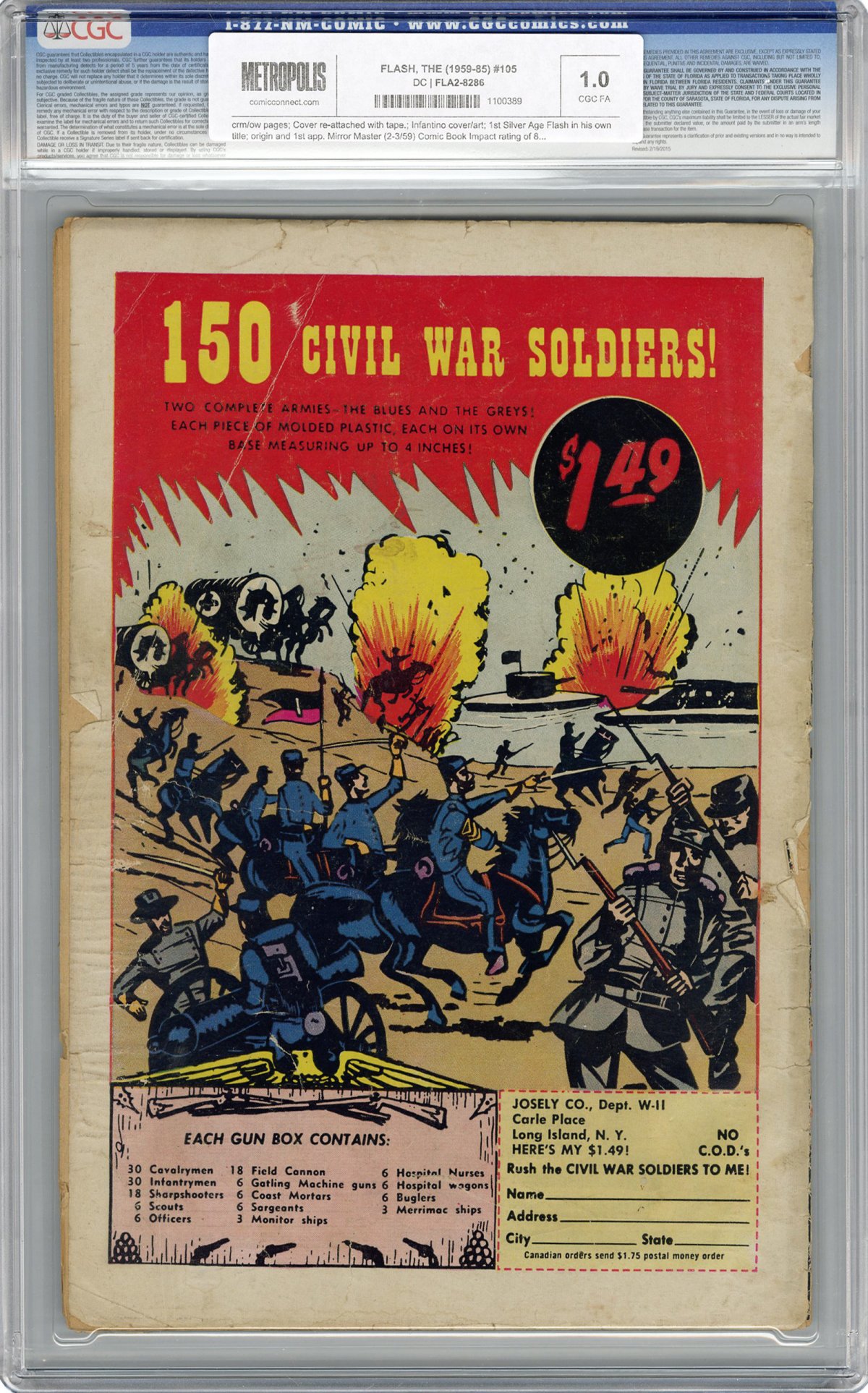 Infantino cover/art; 1st Silver Age Flash in his own title; origin and 1st app. Mirror Master (2-3/59) COMIC BOOK IMPACT rating of 8 (CBI)