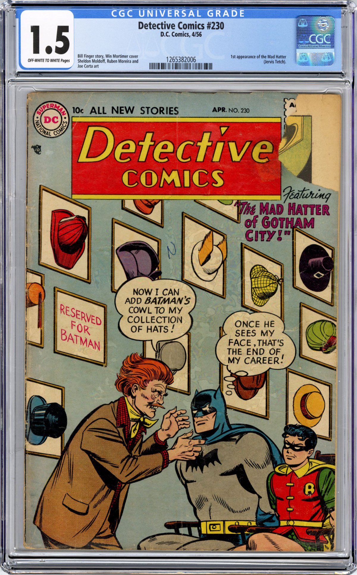 Win Mortimer cover, Moldoff art; 1st app. of the Mad Hatter (Jervis Tetch); COMIC BOOK IMPACT rating of 7 (CBI)