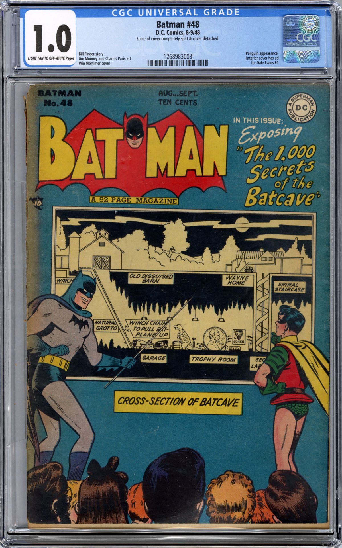 Win Mortimer classic "The 1000 Secrets of the Batcave" cvr; Penguin app.int. cvr has ad for Dale Evans #1