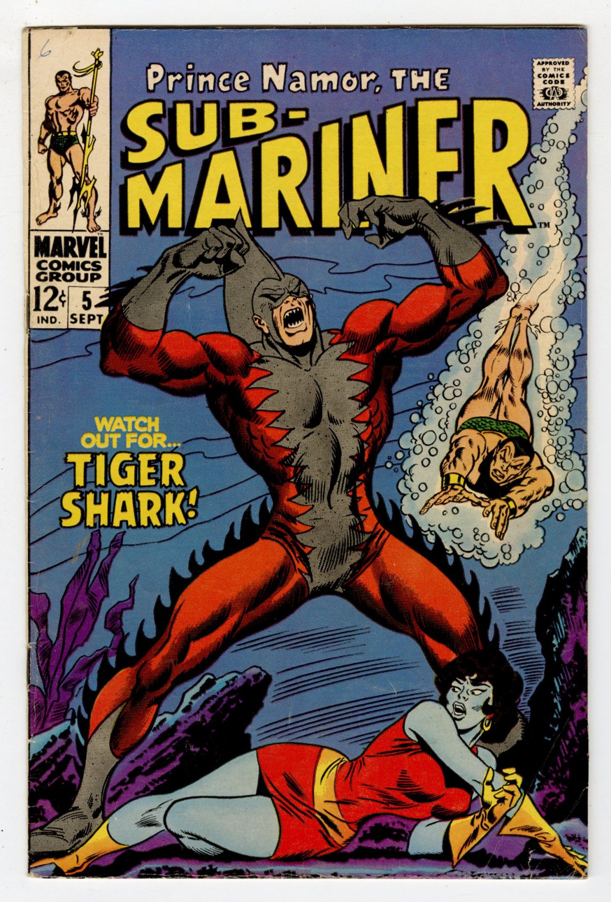 Origin & 1st app. Tiger Shark, Doctor Dorcas, and Diane Arliss, the wife of Stingray; John Buscema art; COMIC BOOK IMPACT rating of 7 (CBI)