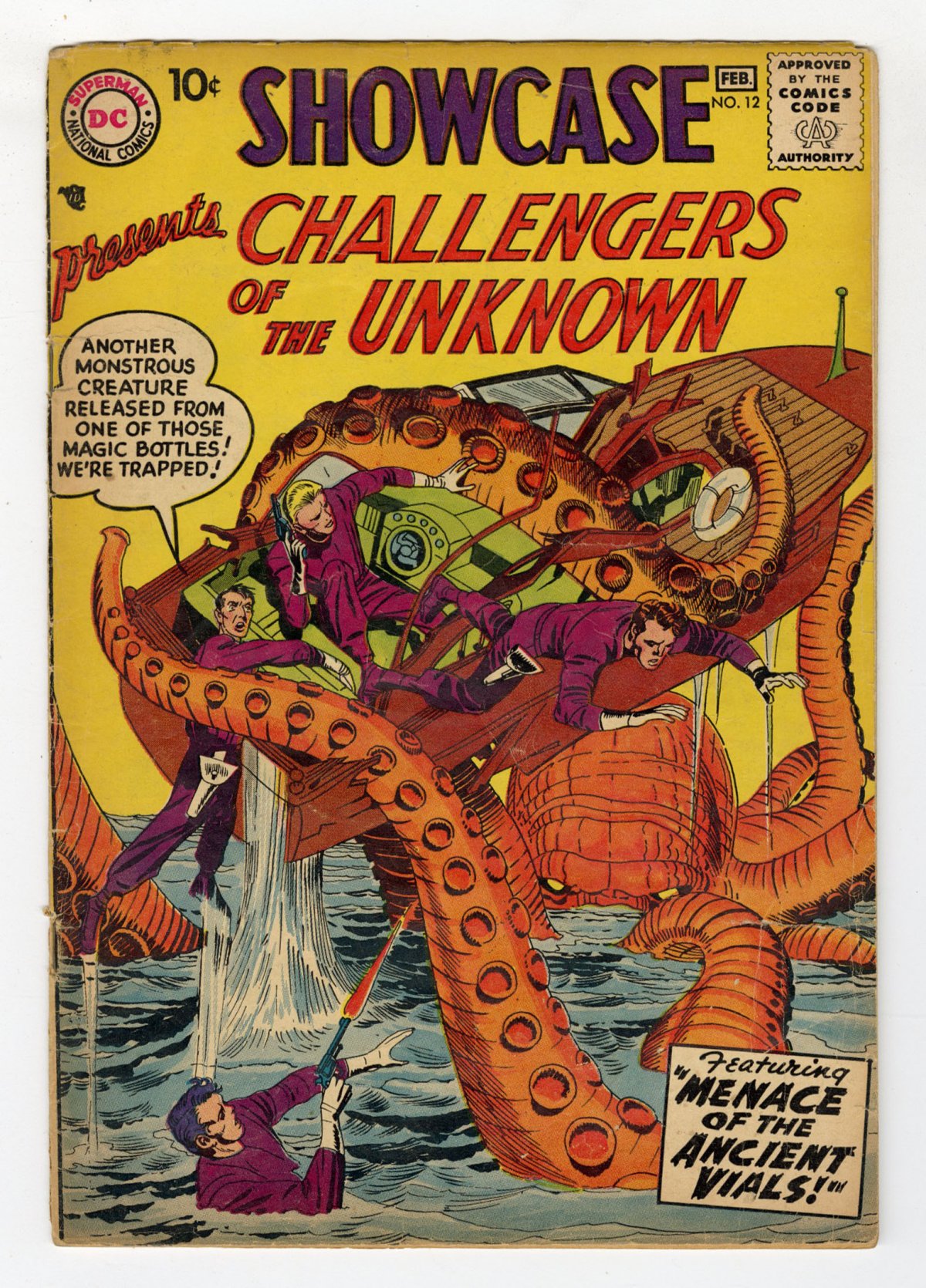Jack Kirby sea monster cover ; Challengers of the Unknown (movie rumors!!); COMIC BOOK IMPACT rating of 6 (CBI)