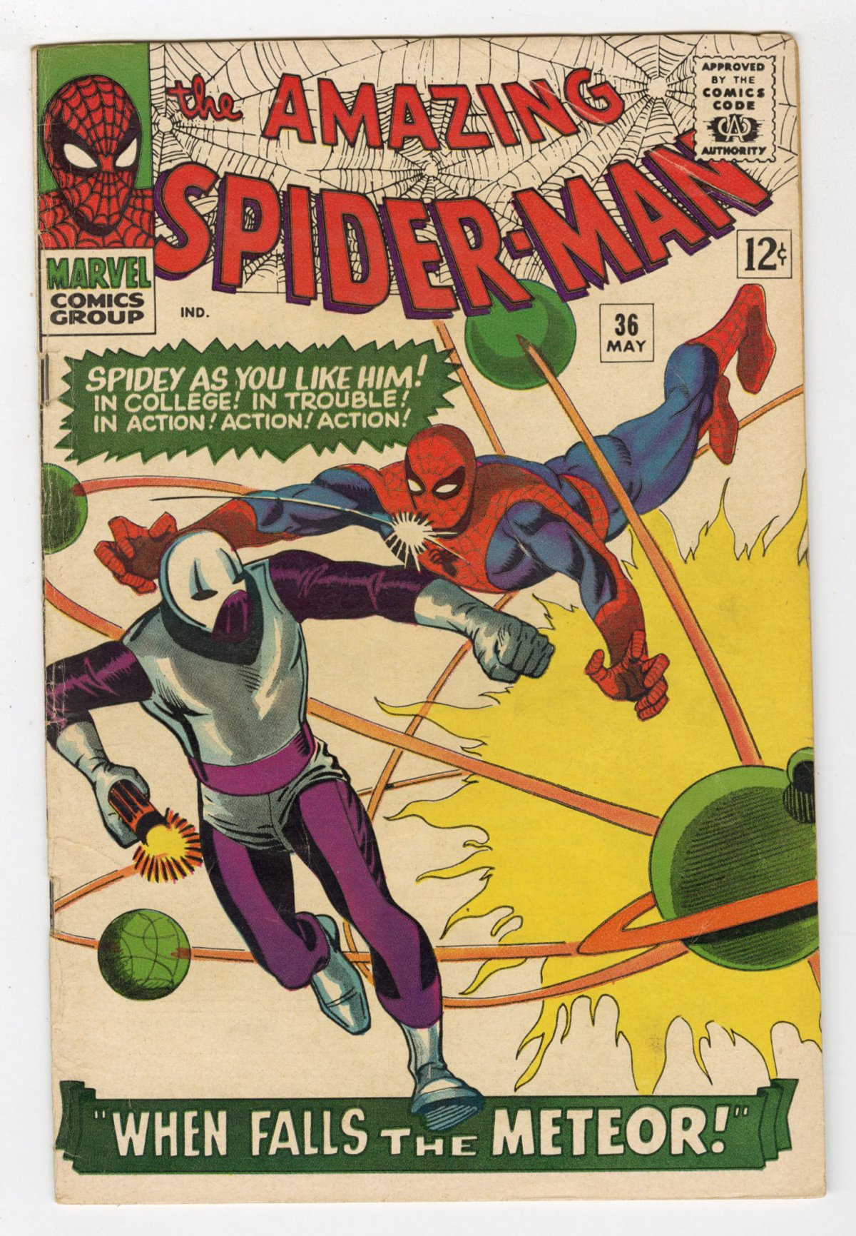 Steve Ditko cover/art; Origin/1st app of the Looter (Norton G. Fester); 1st "Thwip" when activating web shooters