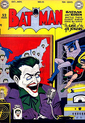 Batman #55 remains a top collectible for "The Case of the 48 Jokers!" — as the Joker realizes his constant clowning is keeping him too busy to commit crimes. He solves this problem by deciding to franchise his criminal identity across all 48 states. This leaves