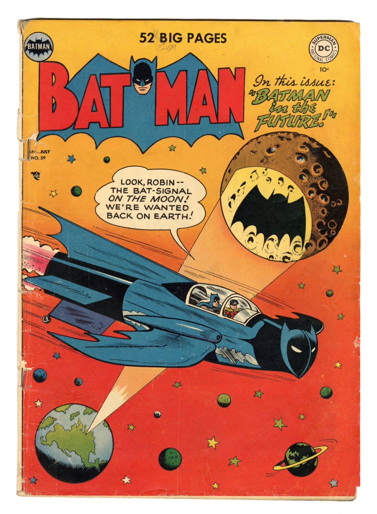 Bob Kane classic sci-fi cover/art; origin & 1st app of Deadshot; Joker cameo; COMIC BOOK IMPACT rating of 7 (CBI)They say iron sharpens iron which is true in the case of Batman and his infamous rouges gallery. They are unquestionably the most popular collection of baddies belonging to a single hero whom are either a perfect antithesis or a near reflection of the Dark Knight himself. Batman's adversaries would not only act as unwitting pawns in his relentless quest for justice, but also make him question his own morality and further his resolve. Enter Floyd Lawton aka Deadshot, who makes his first appearance here in Batman #59, a ruthless mercenary that boasts "he never misses his mark." Deadshot is considered one of the deadliest assassins among the DC Universe and though he mostly appears as a supervillain he is sometimes depicted as an antihero. Recently the character has enjoyed much mainstream success in multiple TV shows and video games, as well as his latest appearance on the silver screen in the DC movie adaption "Suicide Squad."