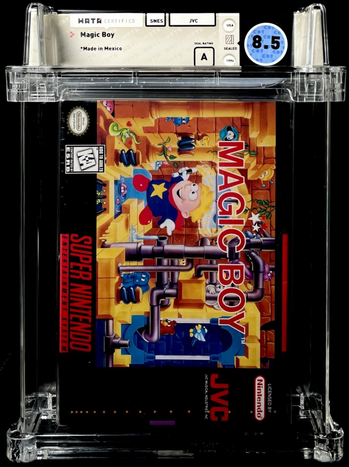 Designed & composed by John Dale; Port of the 1993 multi-platform computer game; Developed by Empire SoftwareAs a wizard's apprentice, Hewlett has made some mistakes in the past, but this time he's really blown it! He's turned the master into a gigantic blue elephant and every other creature within a hundred mile radius into a monster! Now it's up to you to return everything to normal. You are Hewlett, the hapless apprentice. In order to correct your mistake, you'll need to travel through four worlds and sixty-four levels of treacherous steps, dangerous jumps and other perilous situations to capture the rampaging monsters and toss 'em in jail. The monsters may look cute and cuddly, but they're gonna make you wish you had never picked up a wand and spell book! To help out, there are thirty-two hidden bonus levels providing you with extra lives and continues; chances are you'll need them! To be successful in your quest, young Hewlett, you're gonna need brains, patience, and more than a little magic, boy!
