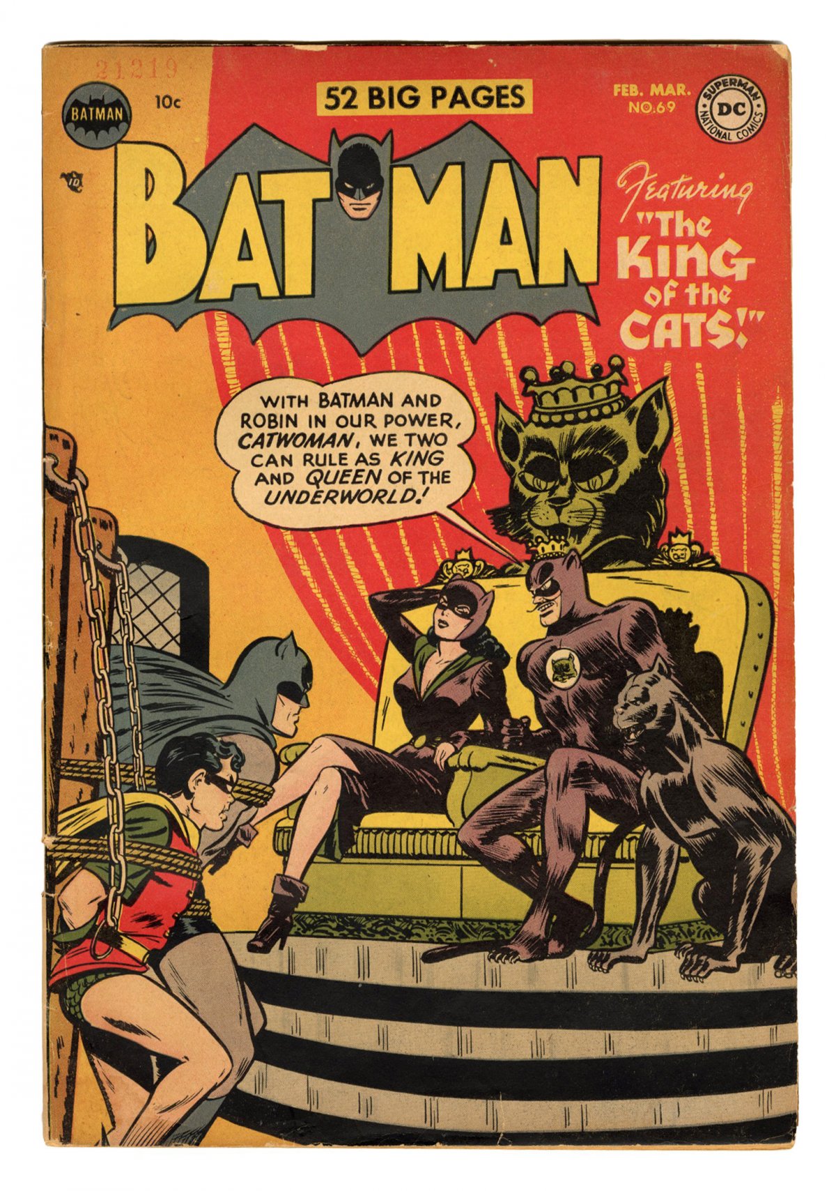 Catwoman comics from the book's early run, featuring Selina Kyle during her very brief stint as a reformed criminal. Things certainly look bad when a Gotham City criminal known as the King of the Cats tries to recruit the former Catwoman into joining him as the King and Queen of Crime. Selina even knocks out Batman and Robin when they attempt to apprehend the King. But it's soon revealed that the former Catwoman is still trying to go straight, and ultimately assist the Dynamic Duo in arresting the King of the Cats — who turns out to be Selina's brother Karl.