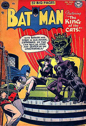 Catwoman bondage cover, 1st app. of King of Cats (Karl Kyle); Walter B. Gibson stories; COMIC BOOK IMPACT rating 7 (CBI)