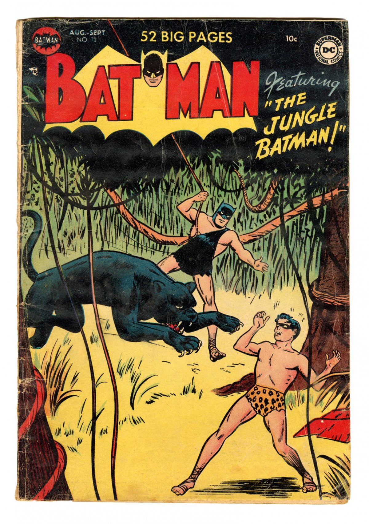 Win Mortimer Jungle Batman cover, Bob Kane, Dick Sprang art; COMIC BOOK IMPACT rating of 6 (CBI)