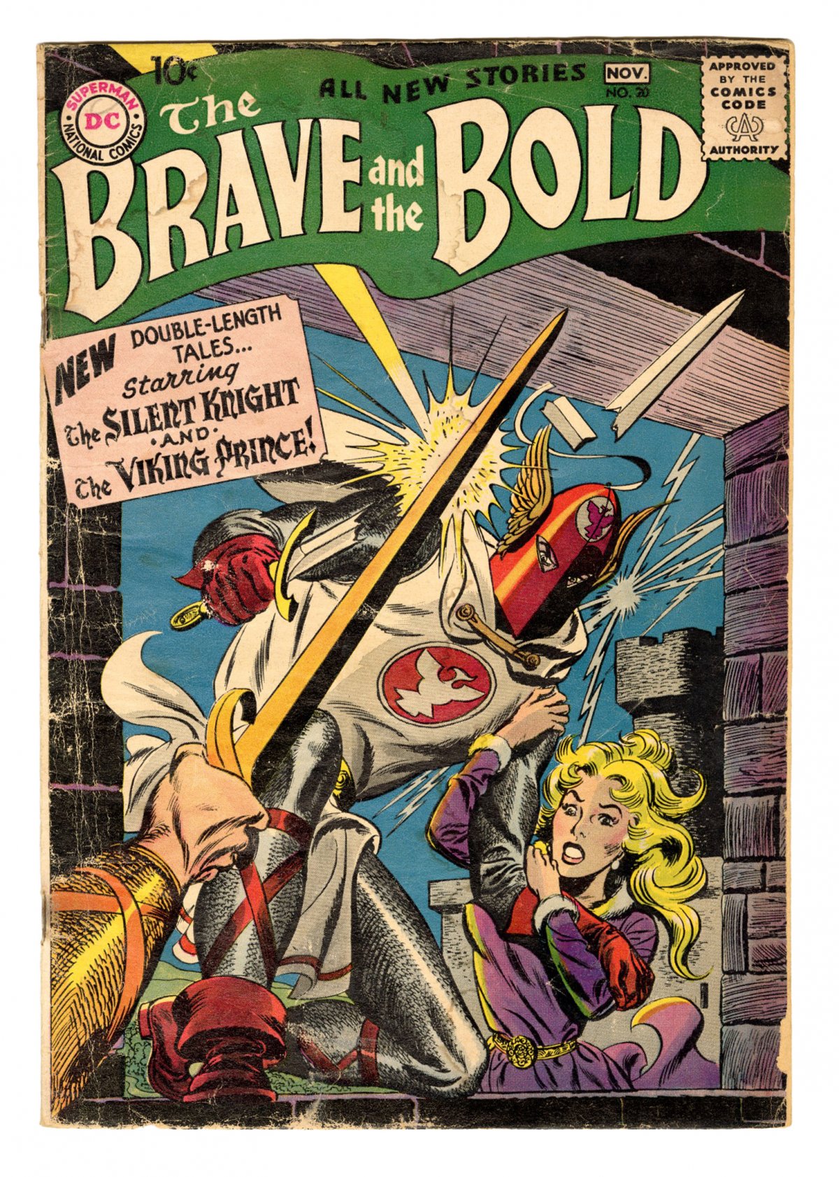 Irv Novick cover/art, Kubert art; Silent Knight/Viking Prince; COMIC BOOK IMPACT rating of 6 (CBI)Cover by Irv Novick. "The Haunted Castle," script by Robert Kanigher, art by Irv Novick; As the legend goes, every one-hundred years the sorceror Thando's castle appears, and he will be free to conquer the land unless a brave knight defeats him; Celia is taken by Thando, making his appearance once again; Only the Silent Knight can defeat him and rescue his lady love! Do You Know the Legend of Superman? ad. The Student Warrior article by Jack Miller, art by Raymond Perry. "The Secret of Odin's Cup," script by Bob Haney, art by Joe Kubert; Jon and the mute bard take shelter in a cave during a storm; But this is no ordinary cave, as it leads to the vast lair of Wotan,