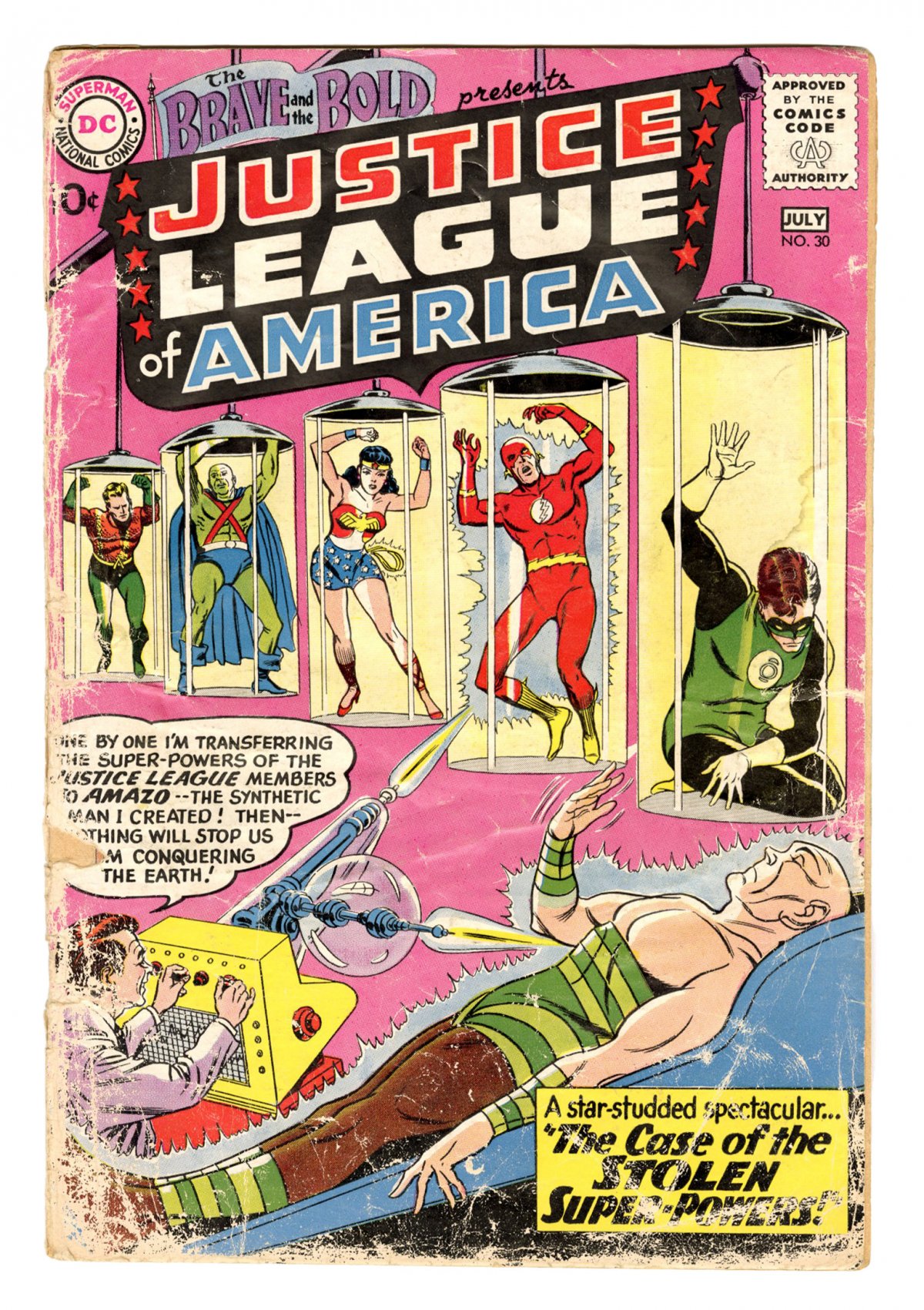 3rd app of JLA; 1st app Amazo (the Android); 1st app of Professor Ivo (creator of Amazo); COMIC BOOK IMPACT rating of 7 (CBI)