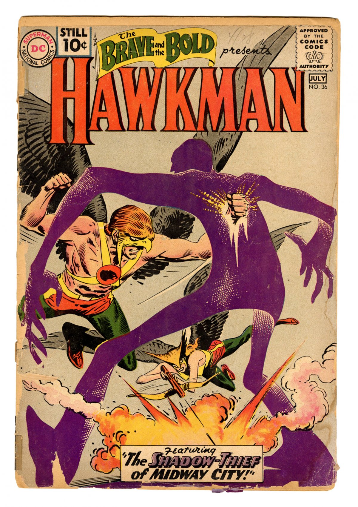 Hawkman; Joe Kubert cover/art; origin & 1st app. of Shadow Thief; COMIC BOOK IMPACT rating of 6 (CBI)Hawkman battle cvr