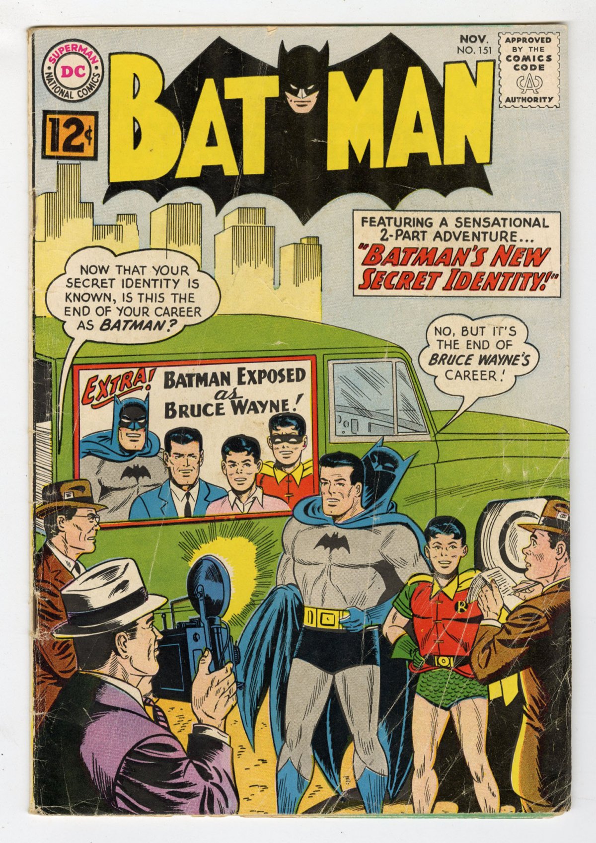 Batwoman story; COMIC BOOK IMPACT rating of 6 (CBI)Cover pencils by Sheldon Moldoff, inks by Charles Paris. "Batman's New Secret Identity!", script by Bill Finger, pencils by Bob Kane, inks by Charles Paris; The Caped Crusaders' secret identities are compromised, forcing them to adopt entirely new identities in order to continue their war on crime. Strange Laws humor/non-fiction page by Henry Boltinoff. One-page Professor Eureka story by Henry Boltinoff. "The Mystery Gadget from the Stars!", script by Jerry Coleman, pencils by Sheldon Moldoff, inks by Charles Paris; A weird alien device is discovered, whose rays causes objects to evolve; The Caped Crusaders must battle a criminal gang into whose hands the device has fallen.