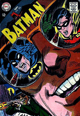 Blind as a Bat; COMIC BOOK IMPACT rating of 6 (CBI)Cover art by Irv Novick. "Blind As a... Bat?", script by Frank Robbins, pencils by Irv Novick, inks by Joe Giella; The Police, believing that the Batman is dead, arrest and take in the Batman whom they believe is an imposter, while the real Batman, disguised as a blind man, aids Robin to prevent an armored car robbery; Robin is captured by the Schemer in the process but Batman outwits the Schemer in his attempt to down a plane loaded with gold. Letters to the editor from comic writer Mark Evanier and Irene Vartanoff.