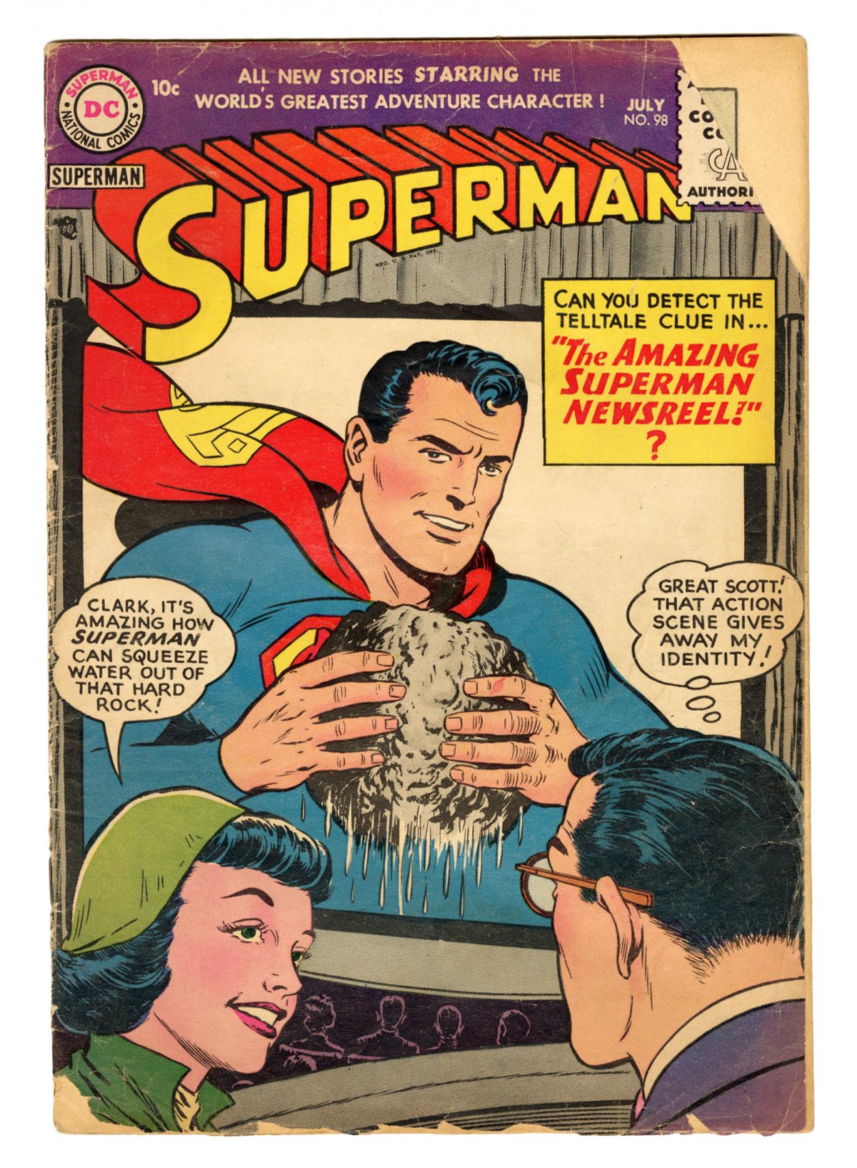 Al Plastino Superman squeezing a rock cvr, Boring art