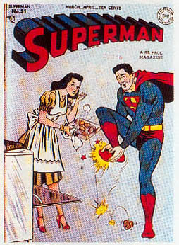 classic Boring rock hard muffins battle cover; Mister Mxyztplk app; last Siegel & Shuster credits until 1976 (3-4/48) COMIC BOOK IMPACT rating of 7 (CBI)last Siegel and Shuster credits in title until #302 in 1976
