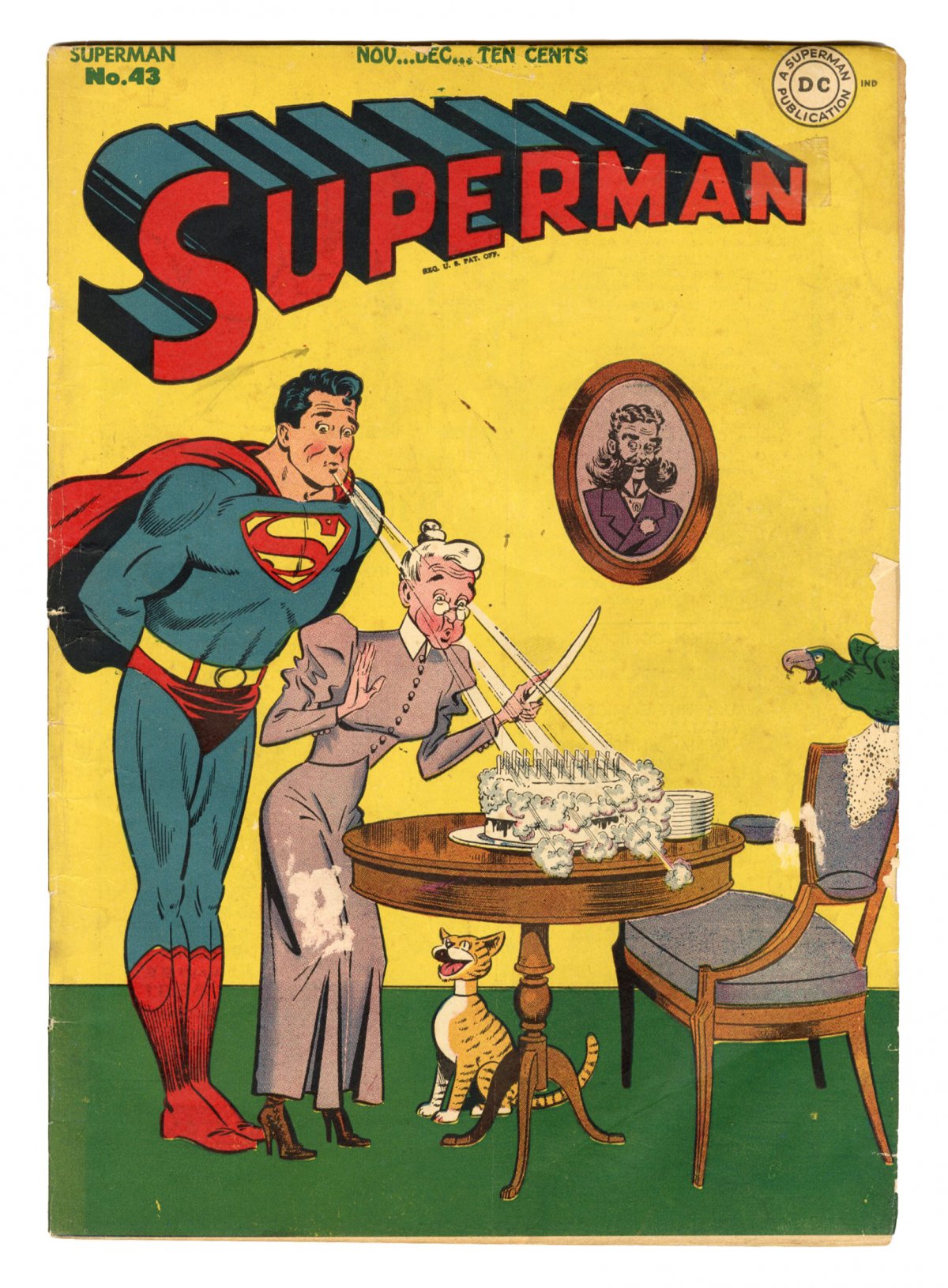 COMMENTS: Boring birthday cake battle cover; Luthor app; COMIC BOOK IMPACT rating of 6 (CBI)