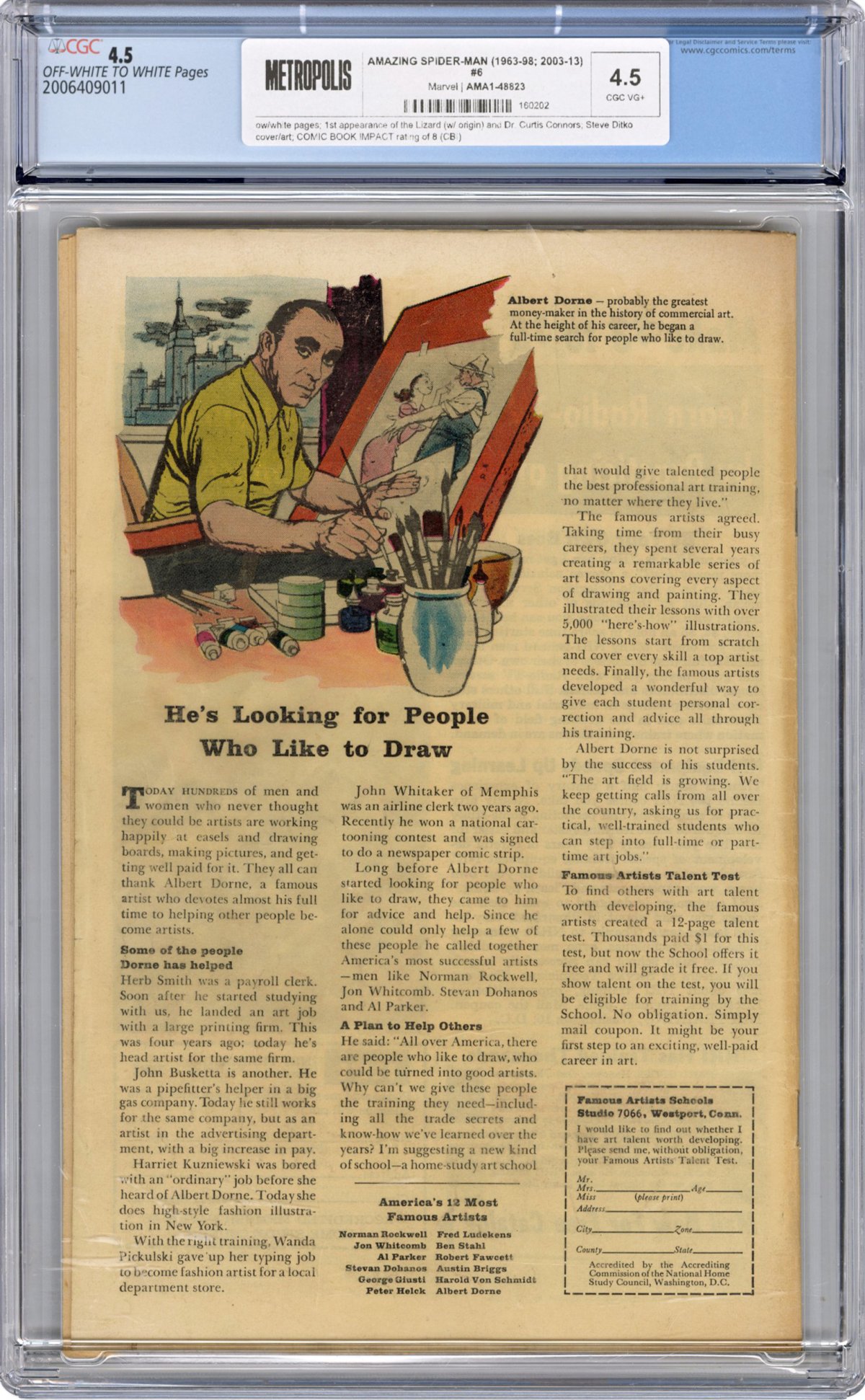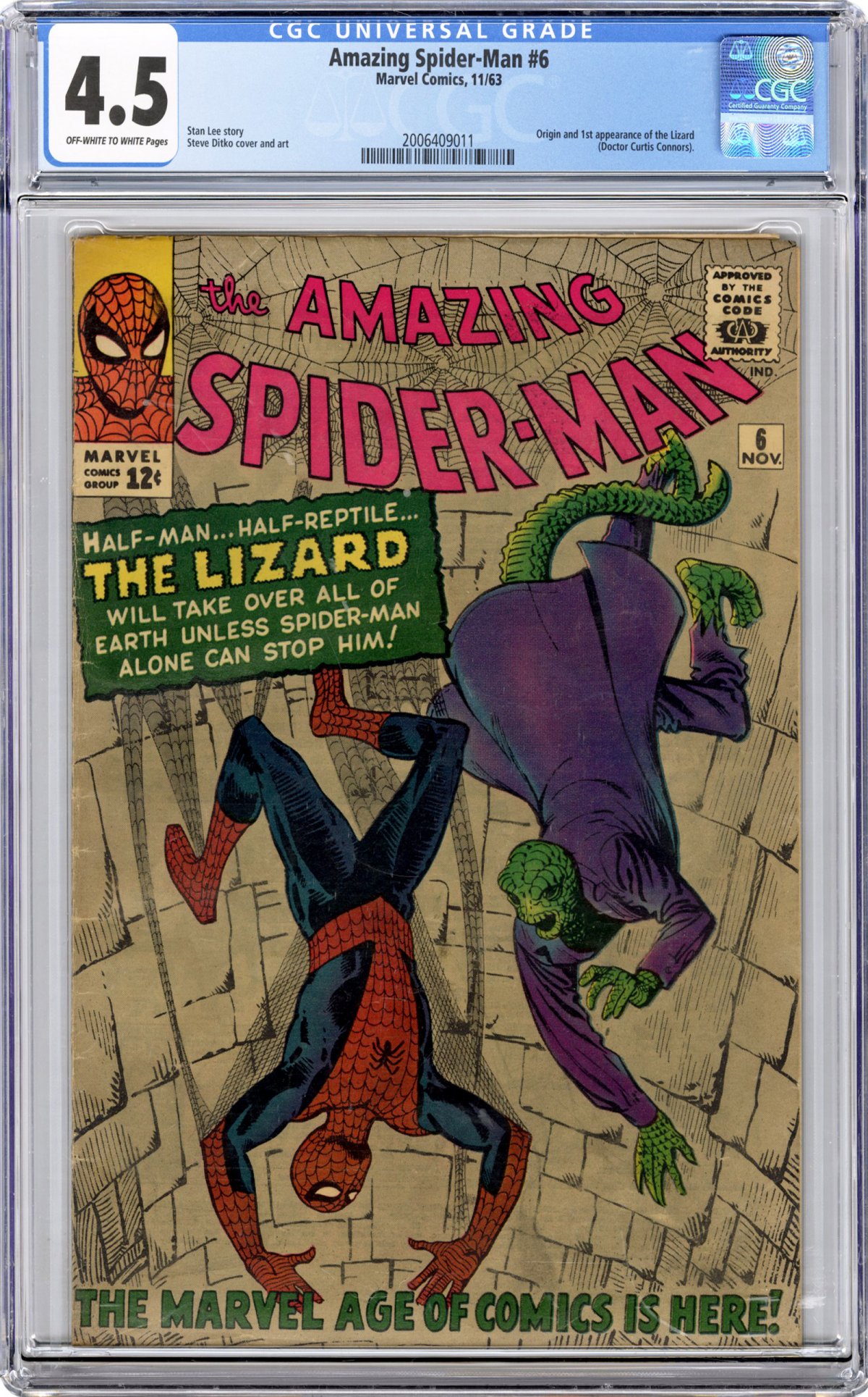 1st appearance of the Lizard (w/ origin) and Dr. Curtis Connors; Steve Ditko cover/art; COMIC BOOK IMPACT rating of 8 (CBI)