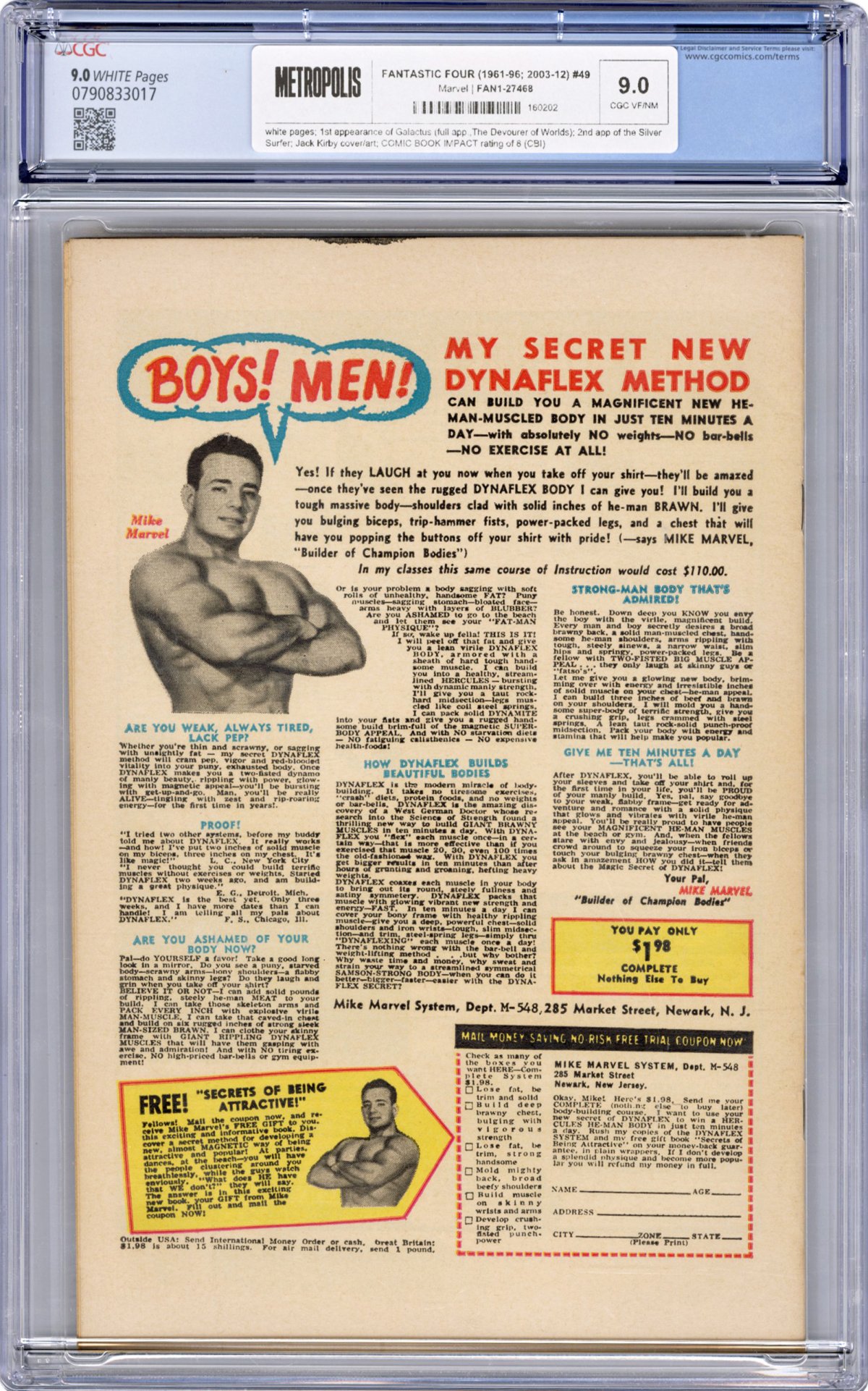 Fantastic Four #49 is both a classic comic and an enduring sci-fi masterpiece, as Marvel introduced the cosmic threat of Galactus — here making his first full appearance as the Devourer of Worlds, with a wild image jumping off the racks courtesy of