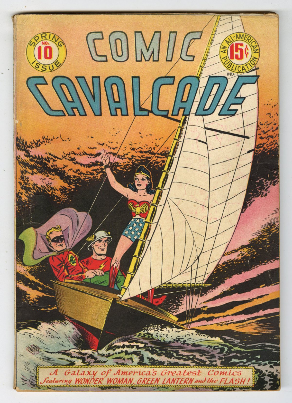 Hibbard cover; H.G. Peter art; Flash, Wonder Woman, Green Lantern sailboat cover