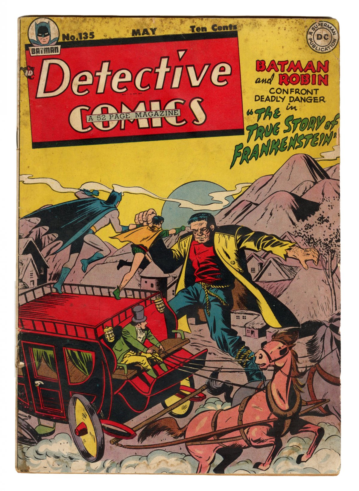 COMMENTS: Batman & Robin vs Frankenstein battle cover by Bob Kane + Curt Swan art; COMIC BOOK IMPACT rating of 6 (CBI)