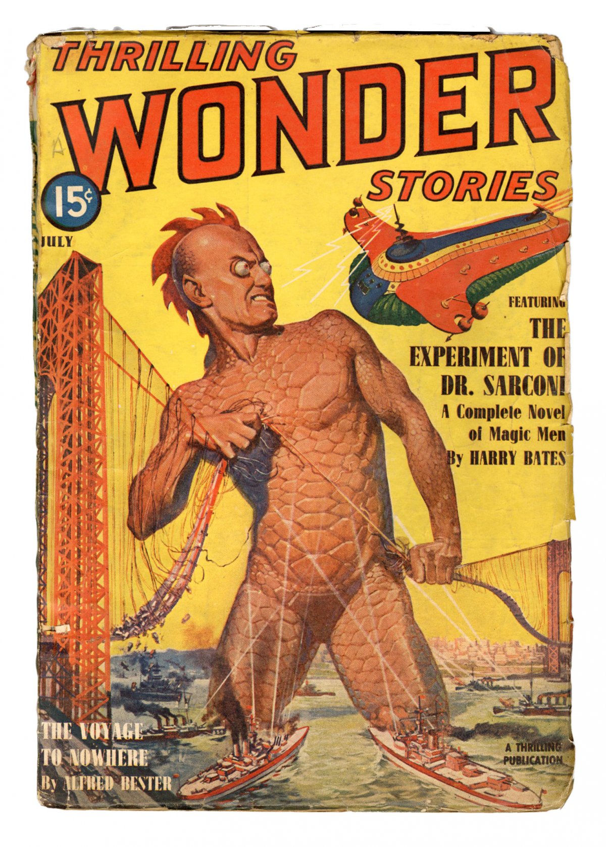 July 1940. classic cover by Howard V. Brown (later redone as 1960s #53 issue of "Superman's Pal Jimmy Olsen"). Stories by Harry Bates, Alfred Bester, Willard E. Hawkins, David V. Reed, H.L. Gold, Helen Weinbaum, and Raymond Z. Gallun. Scientifacts column