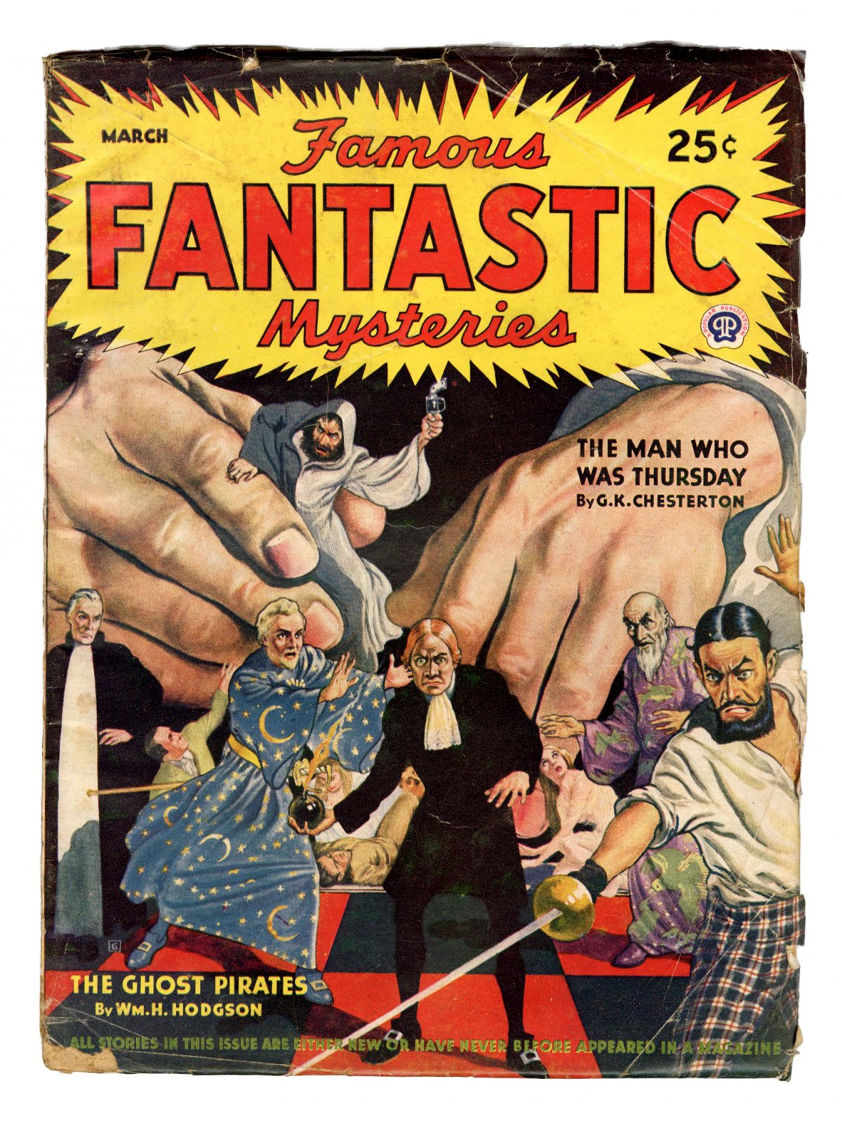 March 1944. Cover and illustrations by Lawrence. "The Man Who Was Thursday (A Nightmare)" by G. K. Chesterton and "The Ghost Pirates" by William Hope Hodgson.