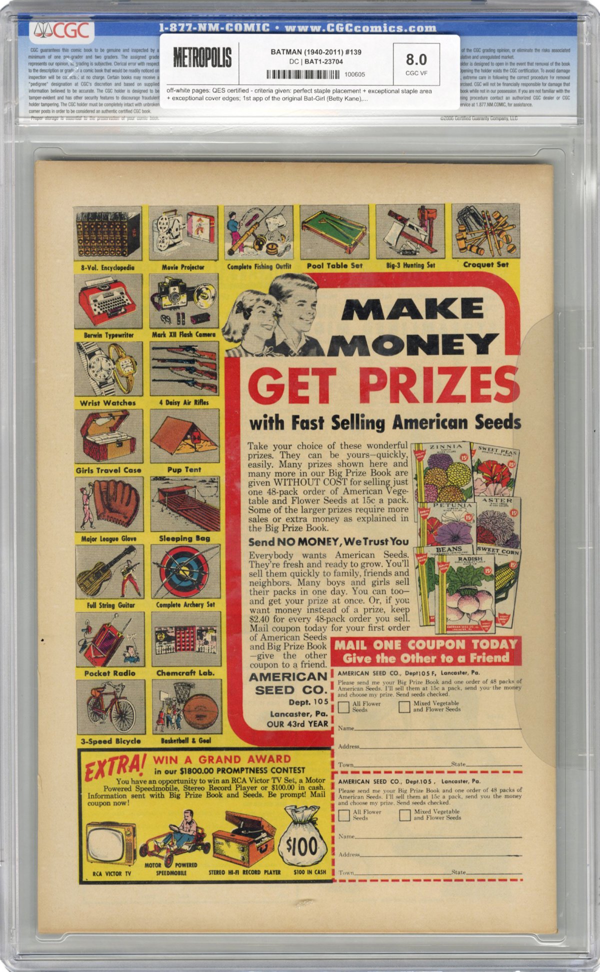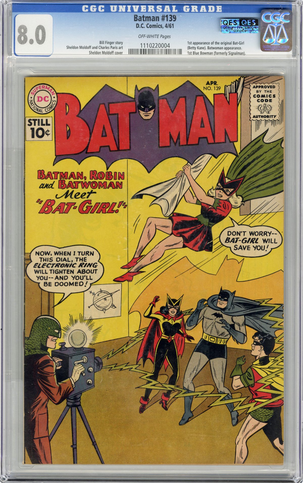 1st app of the original Bat-Girl (Betty Kane), Batwoman app, 1st Blue Bowman (formerly Signalman ) COMIC BOOK IMPACT rating of 7 (CBI)