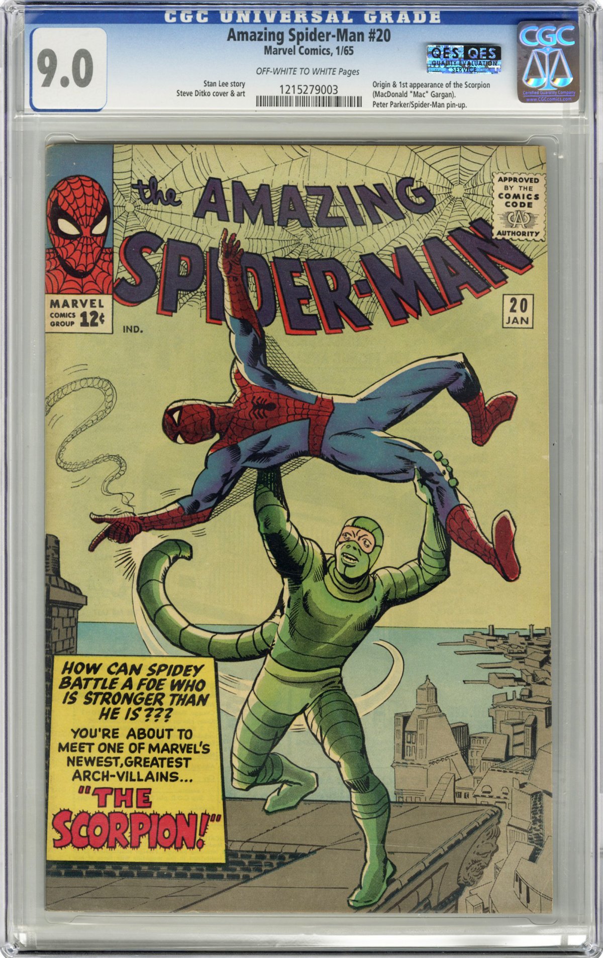 1st appearance of the Scorpion (MacDonald "Mac" Gargan, w/ origin); Steve Ditko cvr/art; COMIC BOOK IMPACT rating of 7 (CBI)